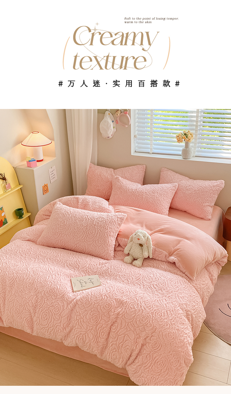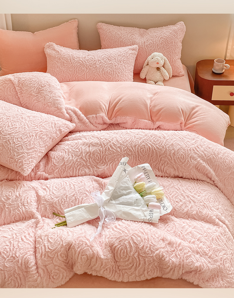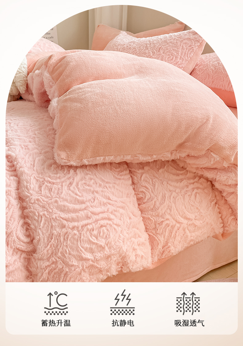 商品名称:名兮 2023新款兔毛绒加厚四件套 玫瑰花语
