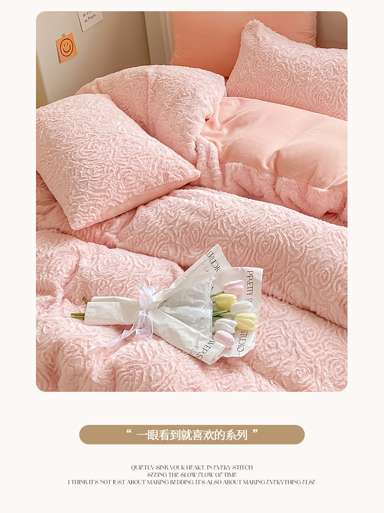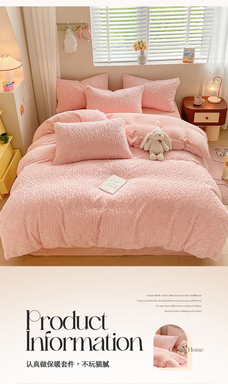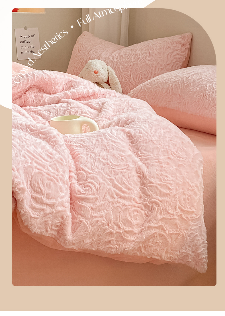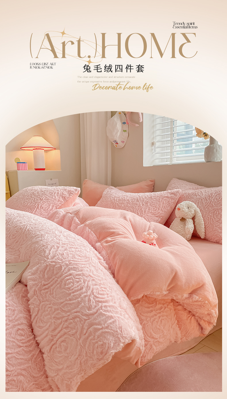 商品名称:名兮 2023新款兔毛绒加厚四件套 玫瑰花语