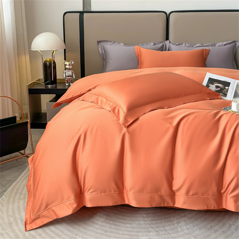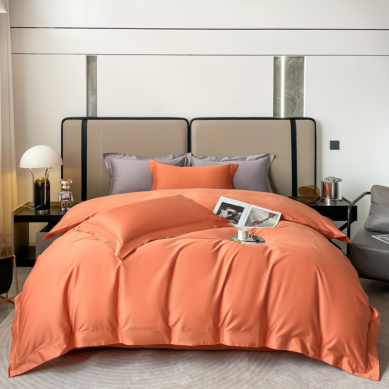 嘉汀兰家居 2023秋冬新品100支双股长绒棉埋绳纯色四件套-卡西欧系列 爱马橙
