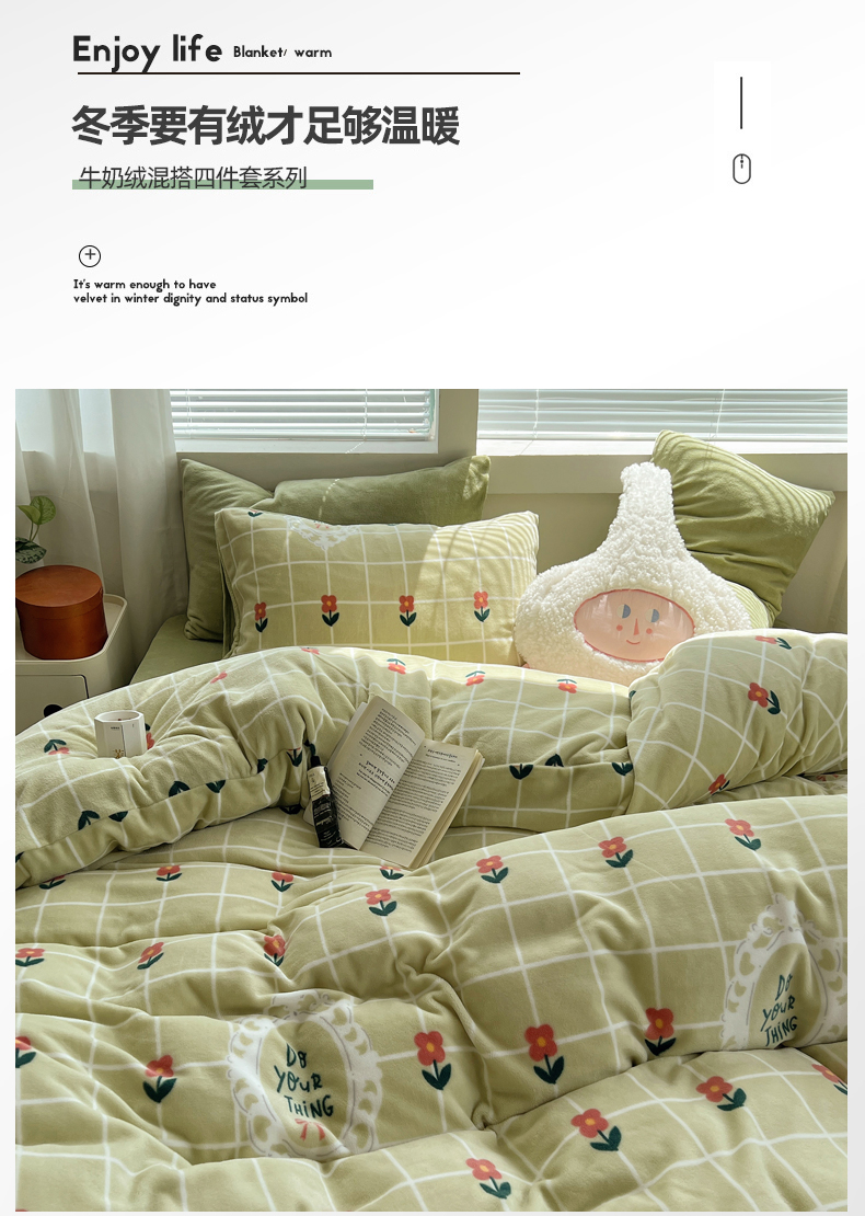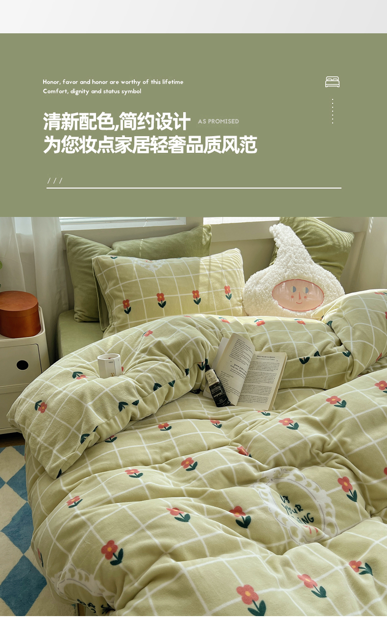 当前位置: 91家纺网 > 商品网购 > 床品套件 > 四件套 > 牛奶绒四件套 > 三朵家纺 2023年牛奶绒小清新系列四件套 花千束