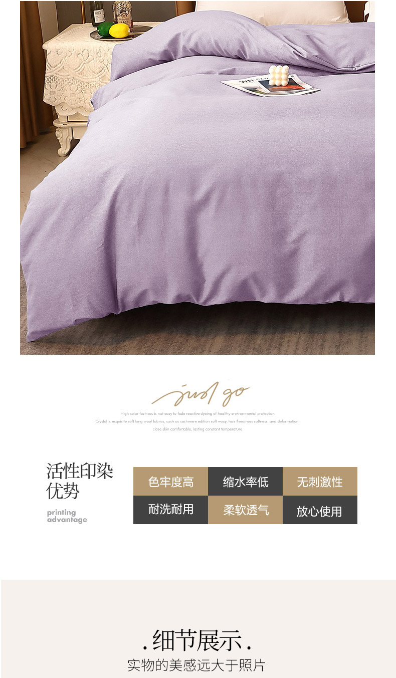 晶缦家纺 2023加厚全棉纯色生态磨毛多规格单品四件套--被套 纯依-浅紫
