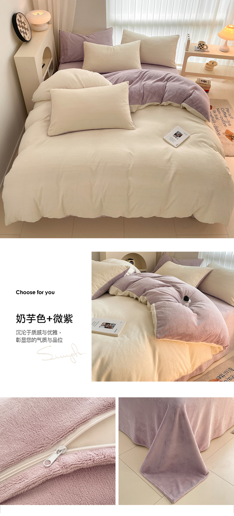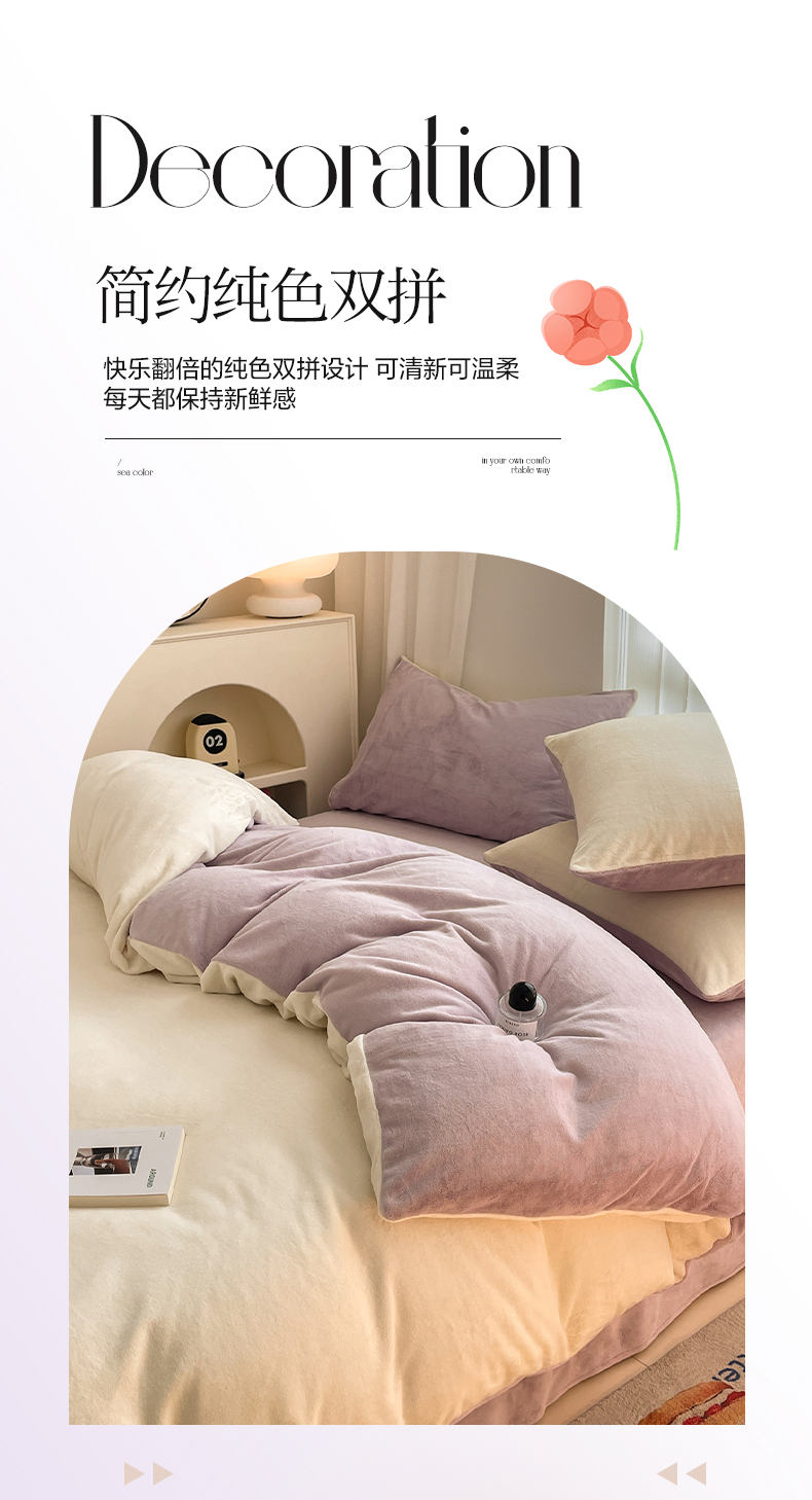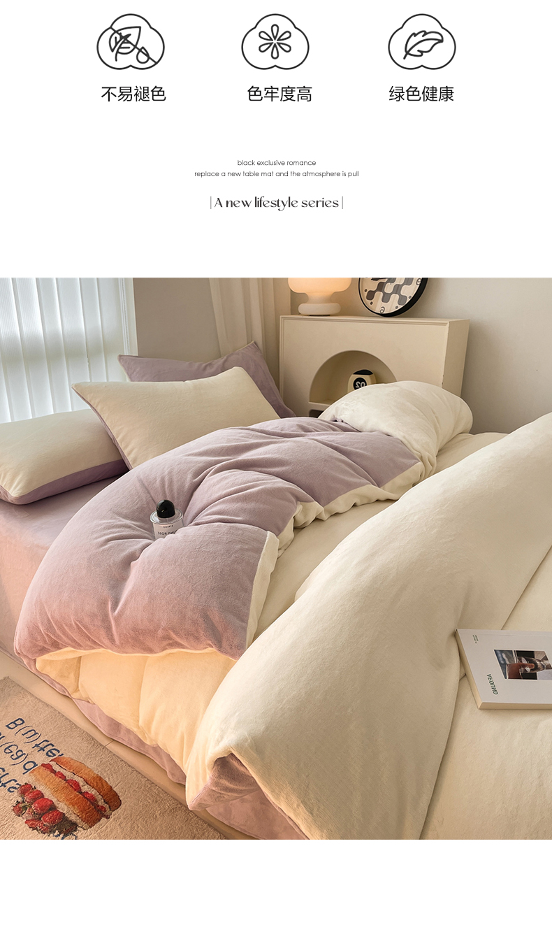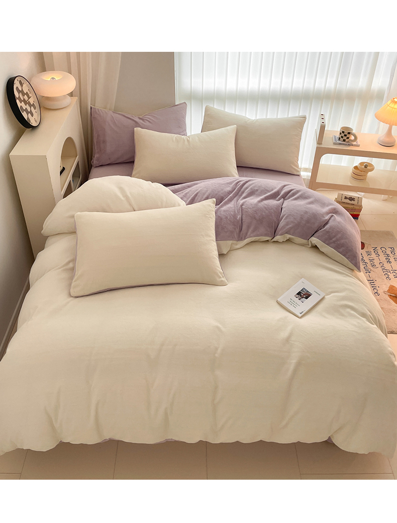 当前位置: 91家纺网 > 商品网购 > 床品套件 > 四件套 > 牛奶绒四件套 > 古吉梦 2023新款牛奶绒纯色双拼(跑量款)四件套 奶芋色+微紫
