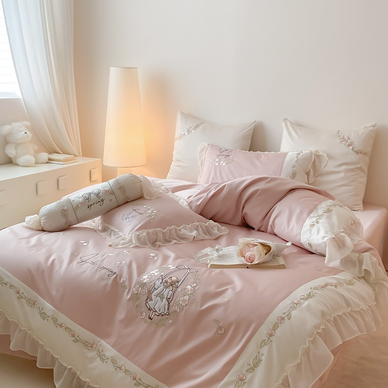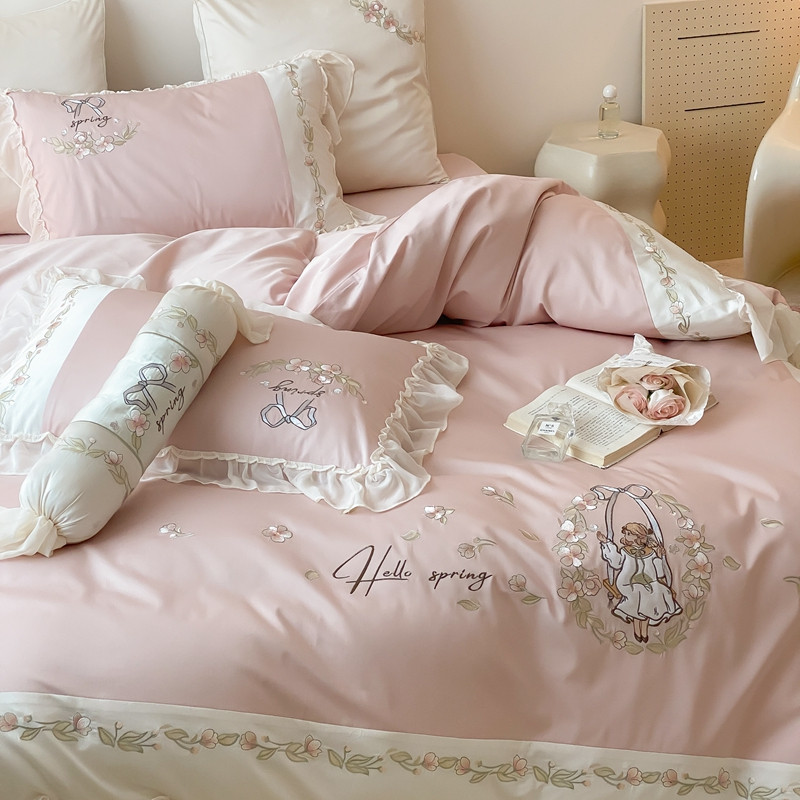馨蕊家居 2023新款100支全棉刺绣四件套-艾莎公主 艾莎公主-初夏粉