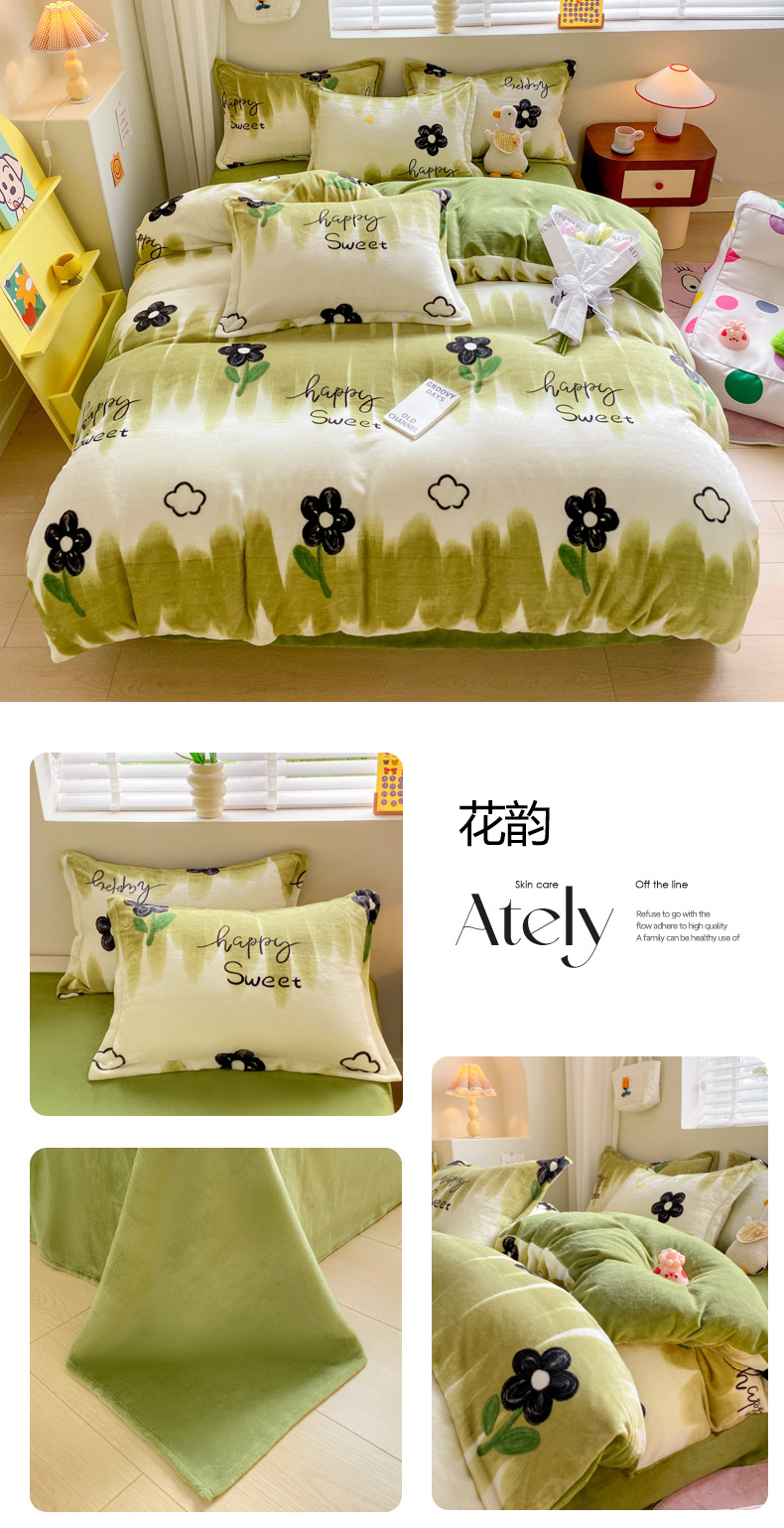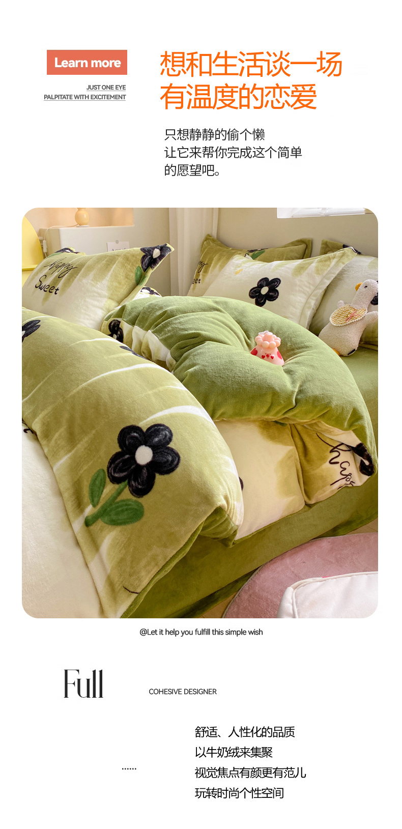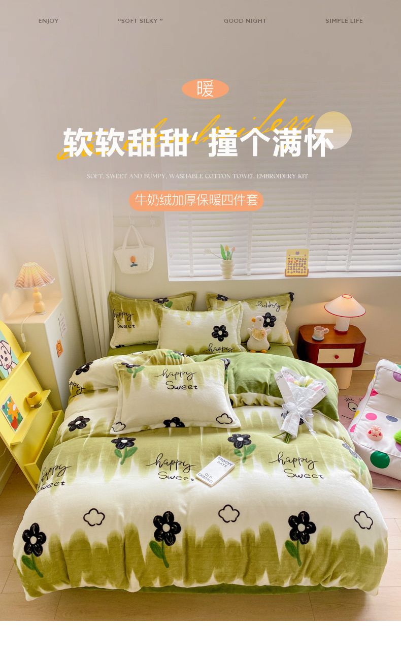 当前位置: 91家纺网 > 商品网购 > 床品套件 > 四件套 > 牛奶绒四件套 > 沐慕 2024新款牛奶绒加厚保暖卡通印花四件套 花韵