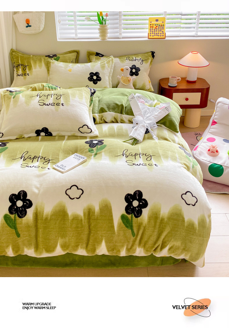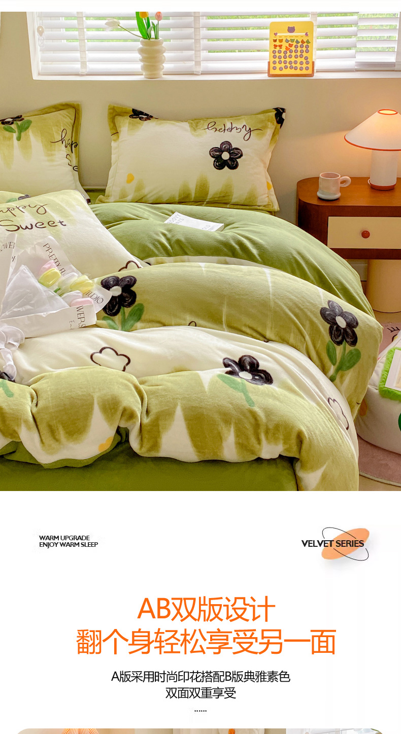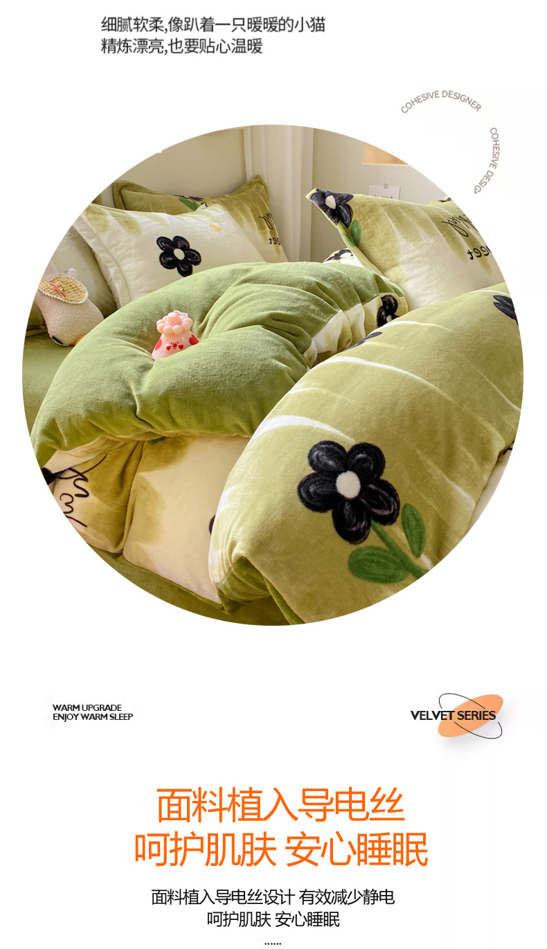 当前位置: 91家纺网 > 商品网购 > 床品套件 > 四件套 > 牛奶绒四件套 > 沐慕 2024新款牛奶绒加厚保暖卡通印花四件套 花韵