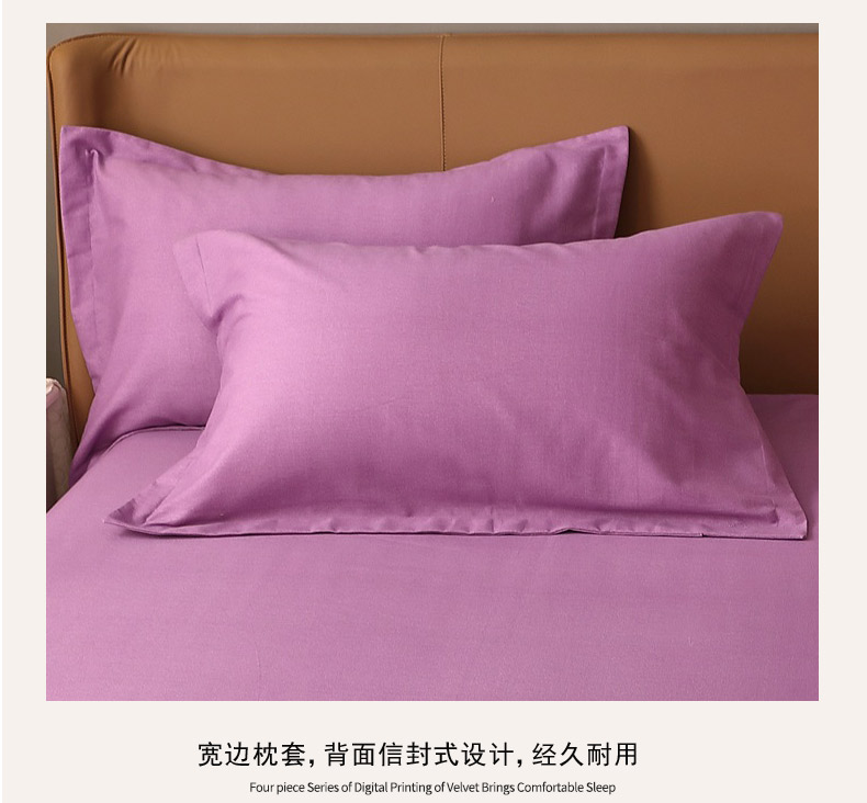 晶缦家纺 2023加厚全棉纯色生态磨毛多规格单品四件套--枕套 纯依-魅紫