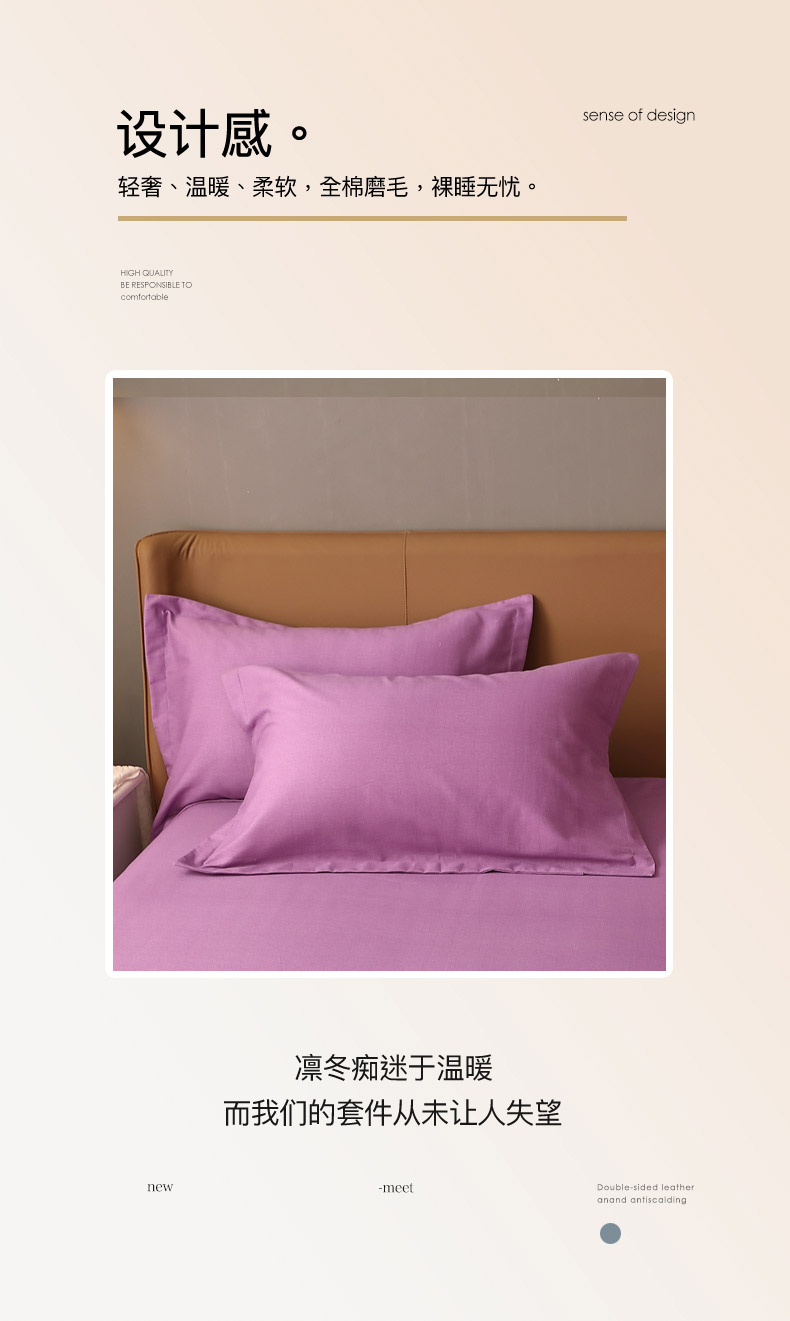 商品名称:晶缦家纺 2023加厚全棉纯色生态磨毛多规格单品四件套--枕套 纯依-魅紫
