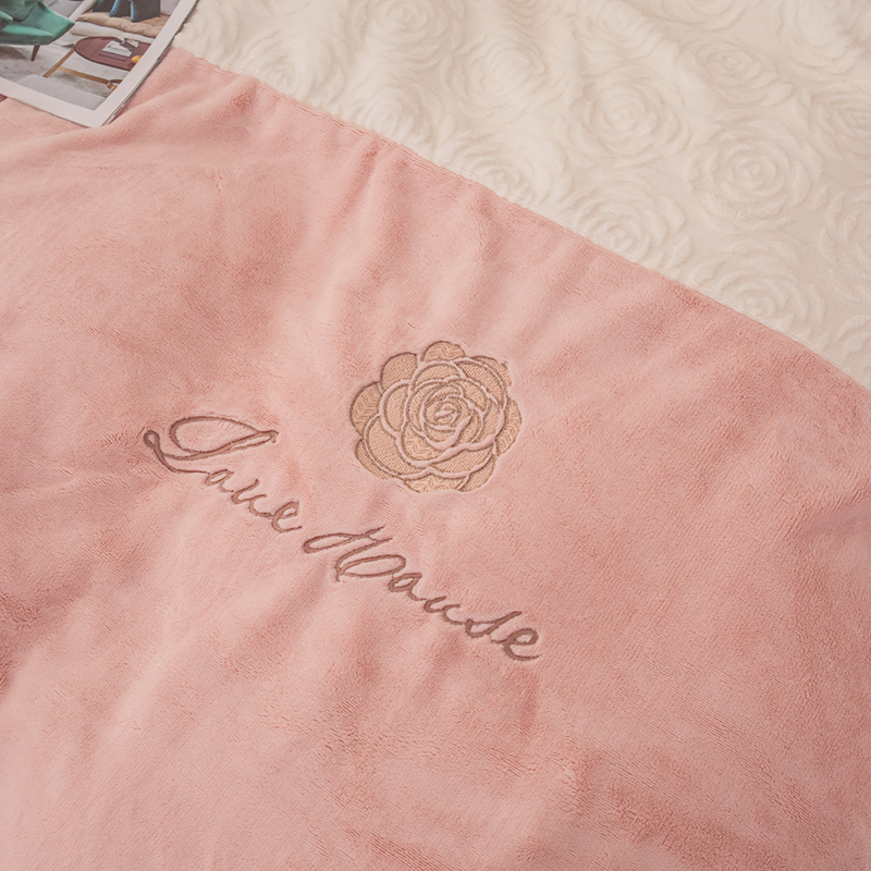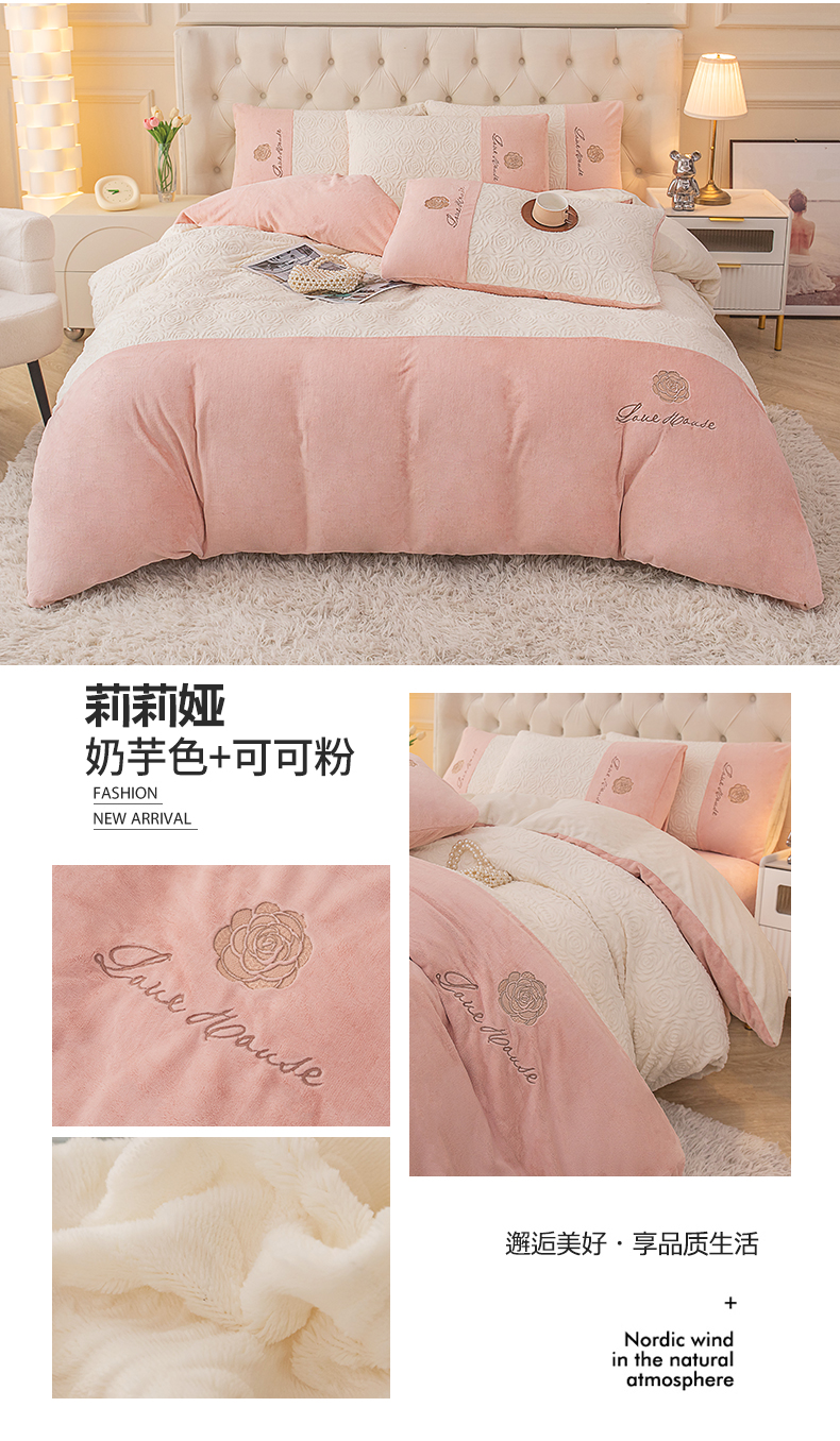 商品名称:好阁 2023新款法式刺绣小香风雕花双拼牛奶绒四件套 奶芋色+可可粉