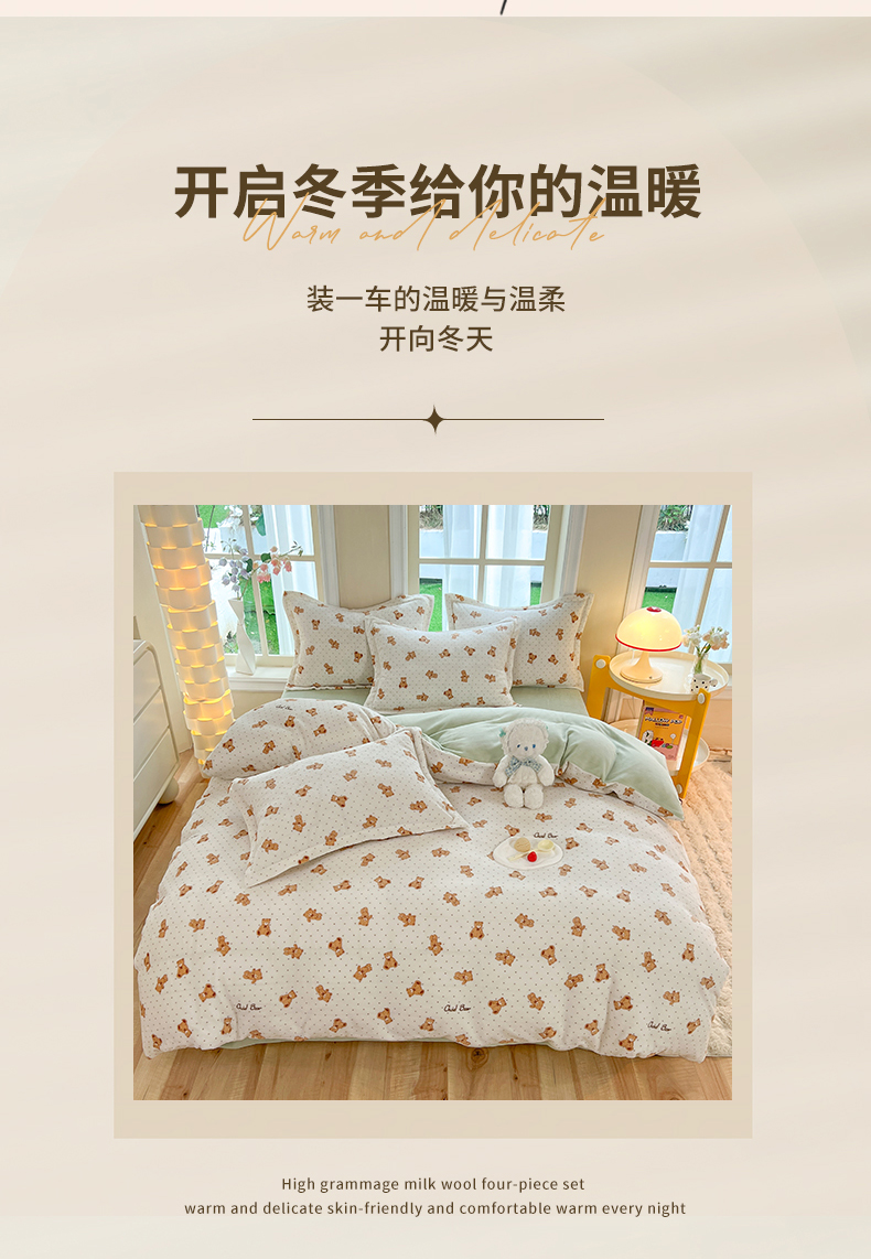 当前位置: 91家纺网 > 商品网购 > 床品套件 > 四件套 > 牛奶绒四件套 > 妖妖家纺 2023新款牛奶绒四件套 呆萌熊