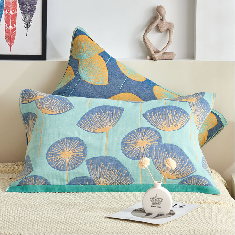 朴尔 2023年民族风彩棉系列四层纱布枕巾 梦幻蒲公英绿