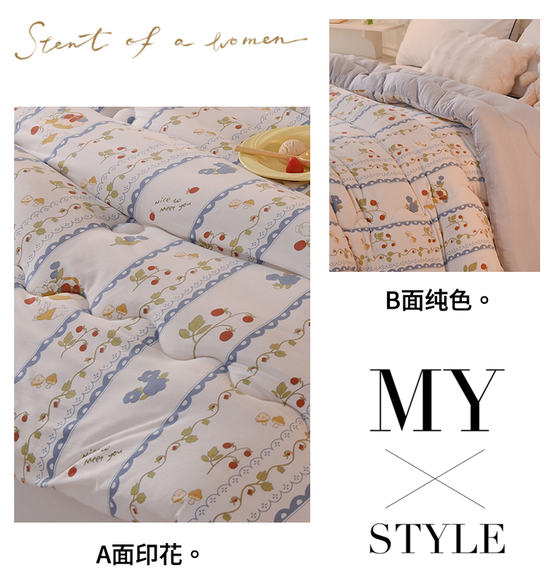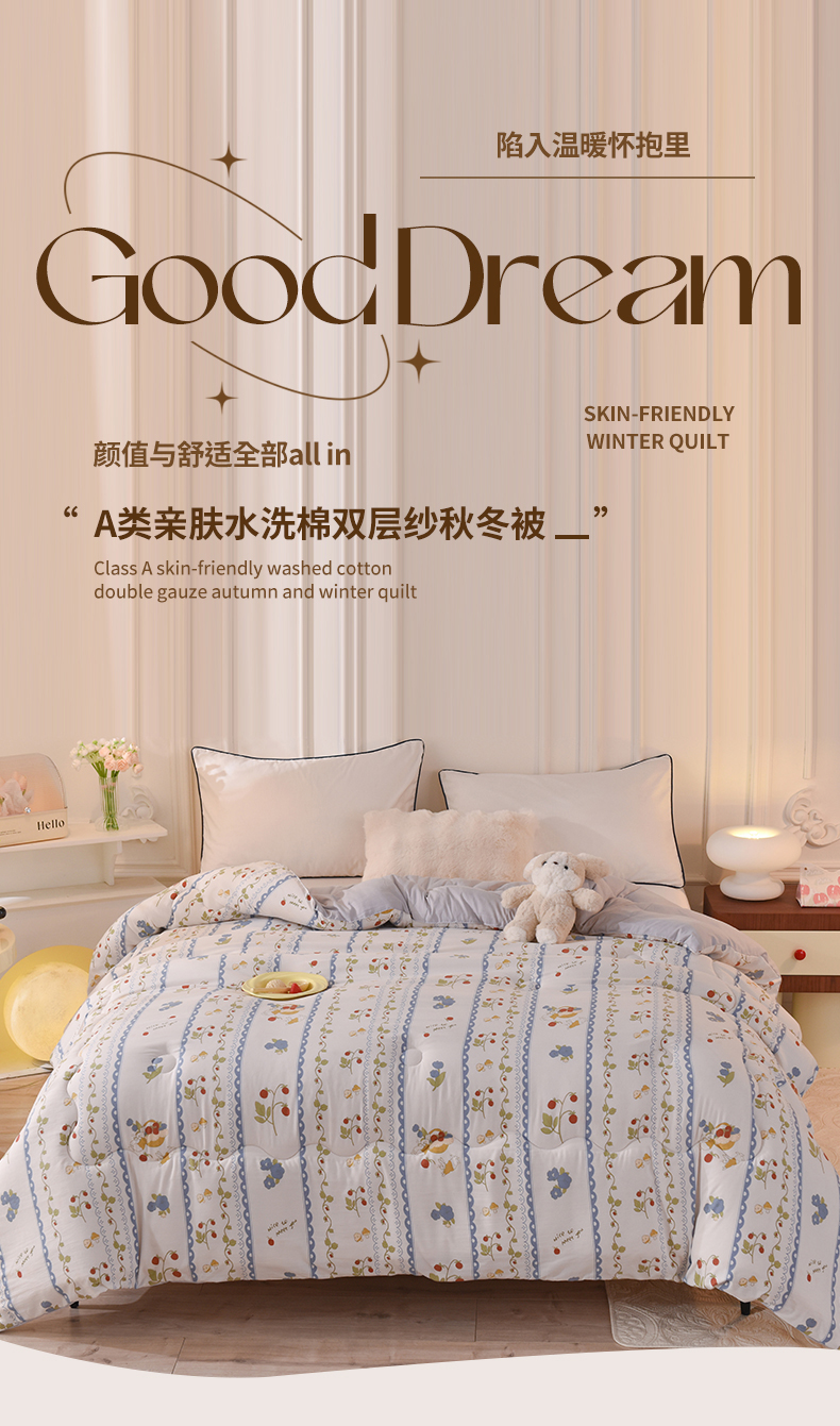 • 91家纺网 家纺一手货源 找家纺 妖妖家纺 2023妖妖超柔水洗双层纱冬被 碎花嫣
