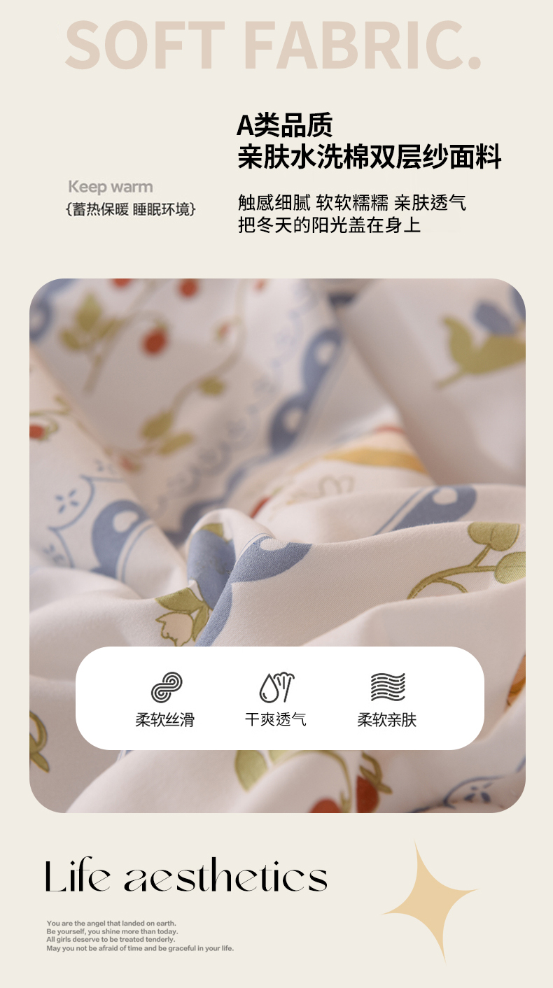 妖妖家纺 2023妖妖超柔水洗双层纱冬被 碎花嫣