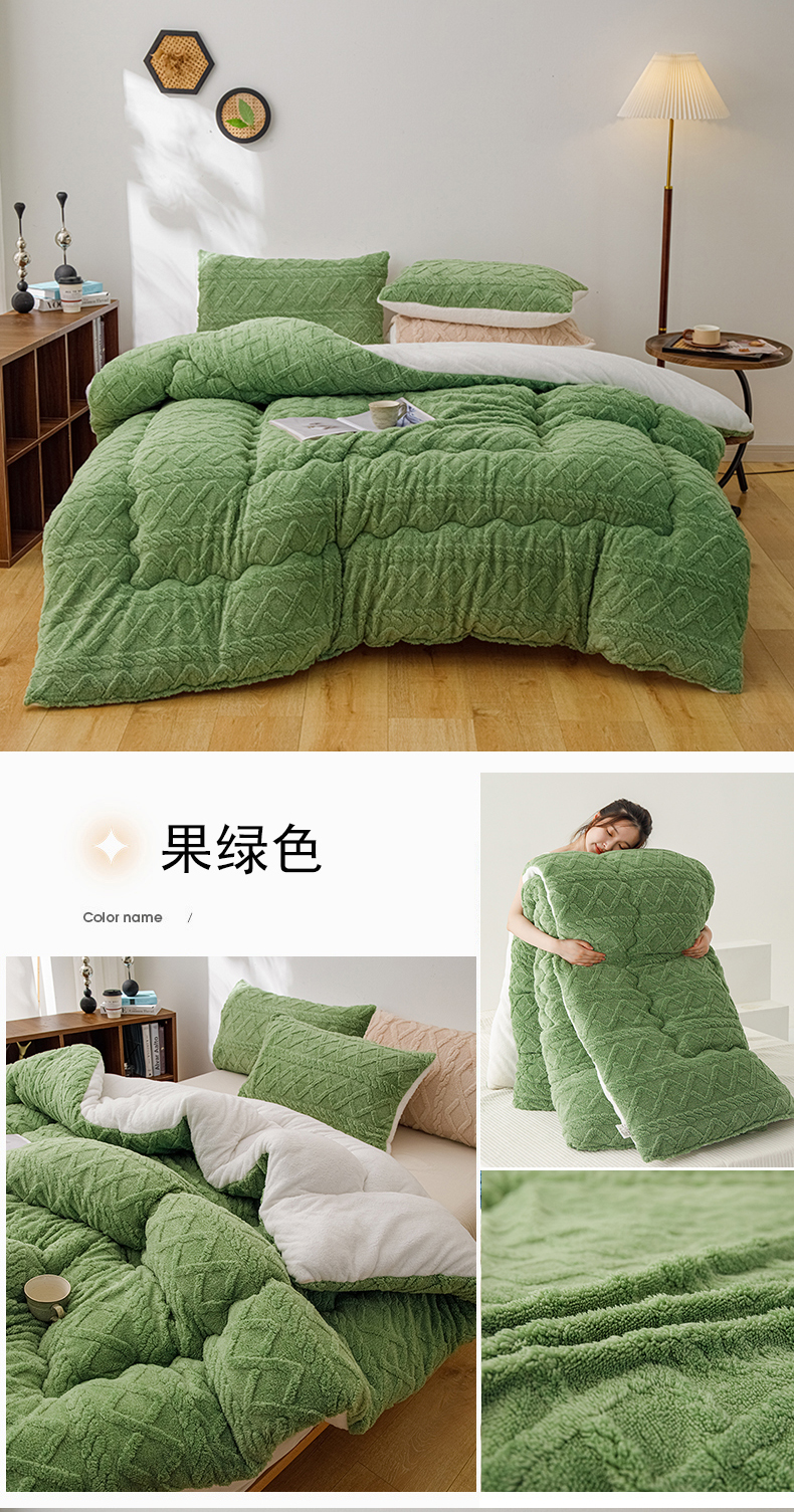 • 91家纺网 家纺一手货源 找家纺 雅蔓依 2025新款塔芙绒羊羔绒冬被被子被芯 果绿色