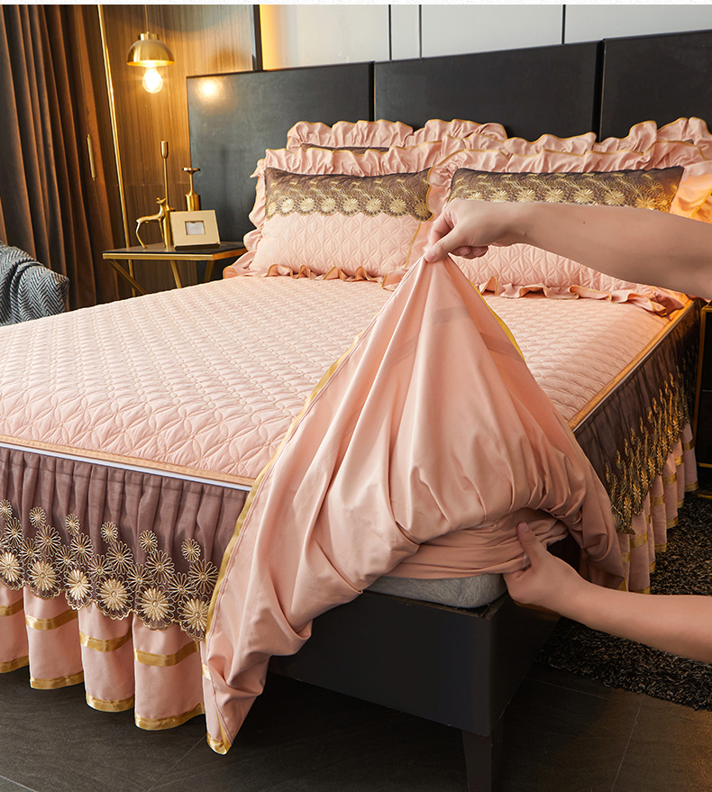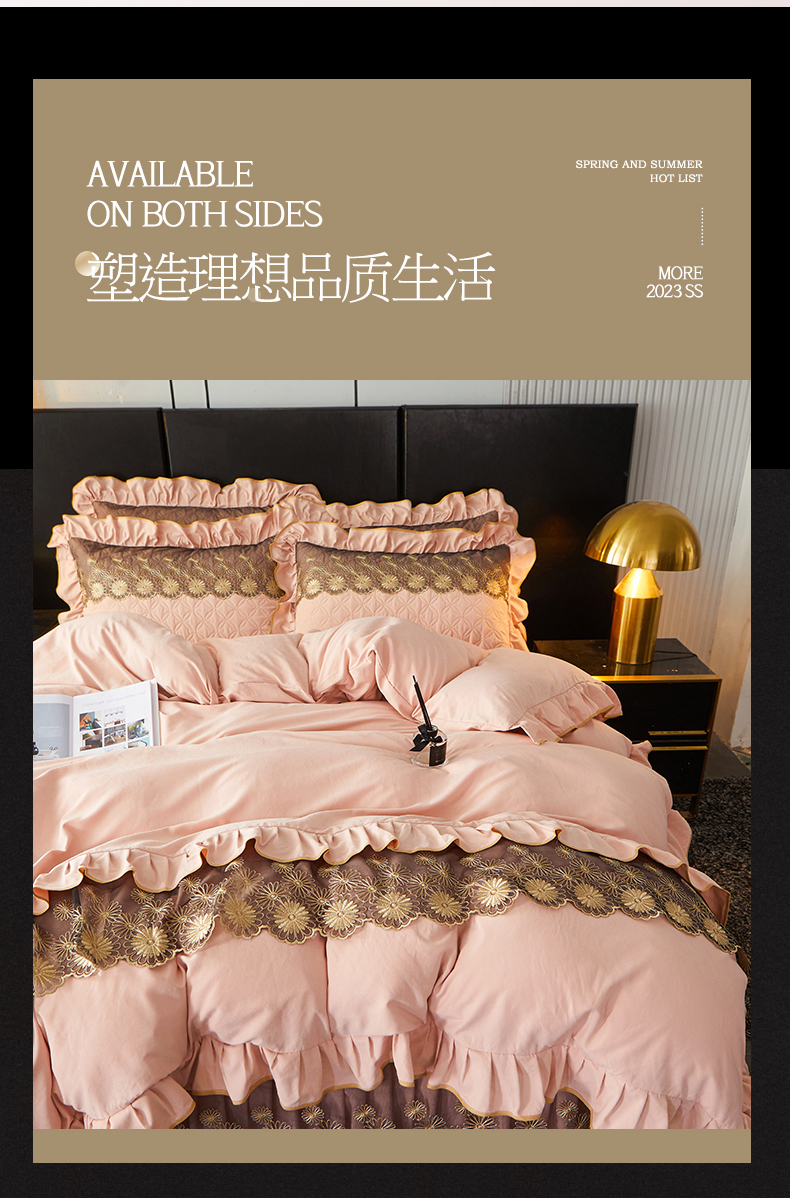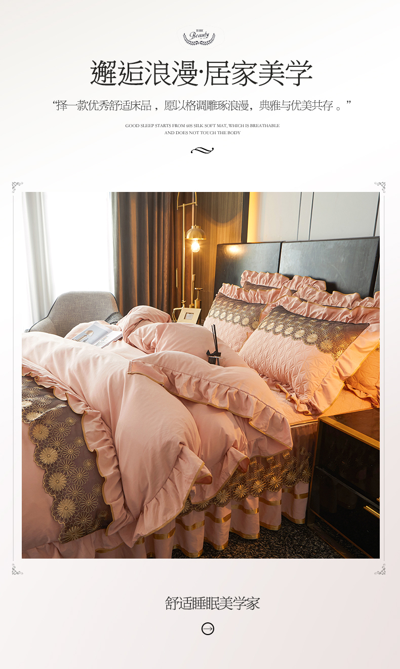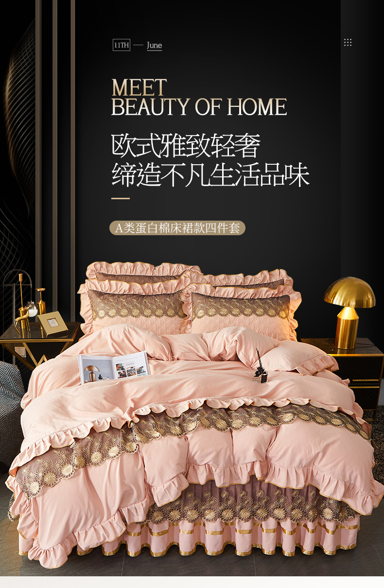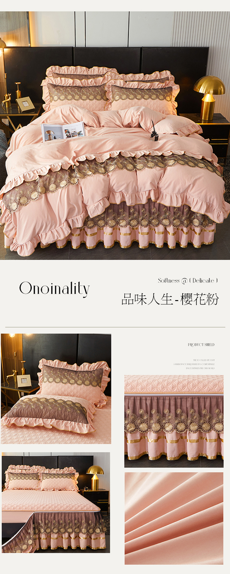 当前位置: 91家纺网 > 商品网购 > 床品套件 > 四件套 > 化纤普通四件套 > 罗艺轩 2024新款A类蛋白棉夹棉床裙四件套-品味人生 品味人生-樱花粉