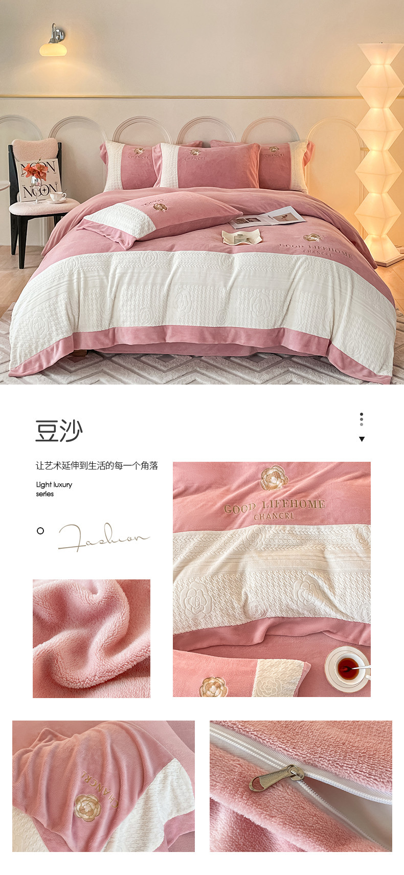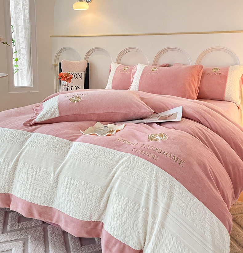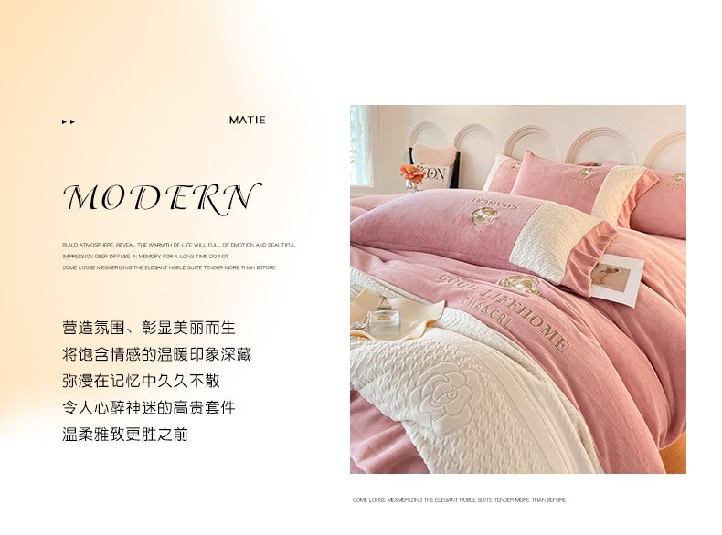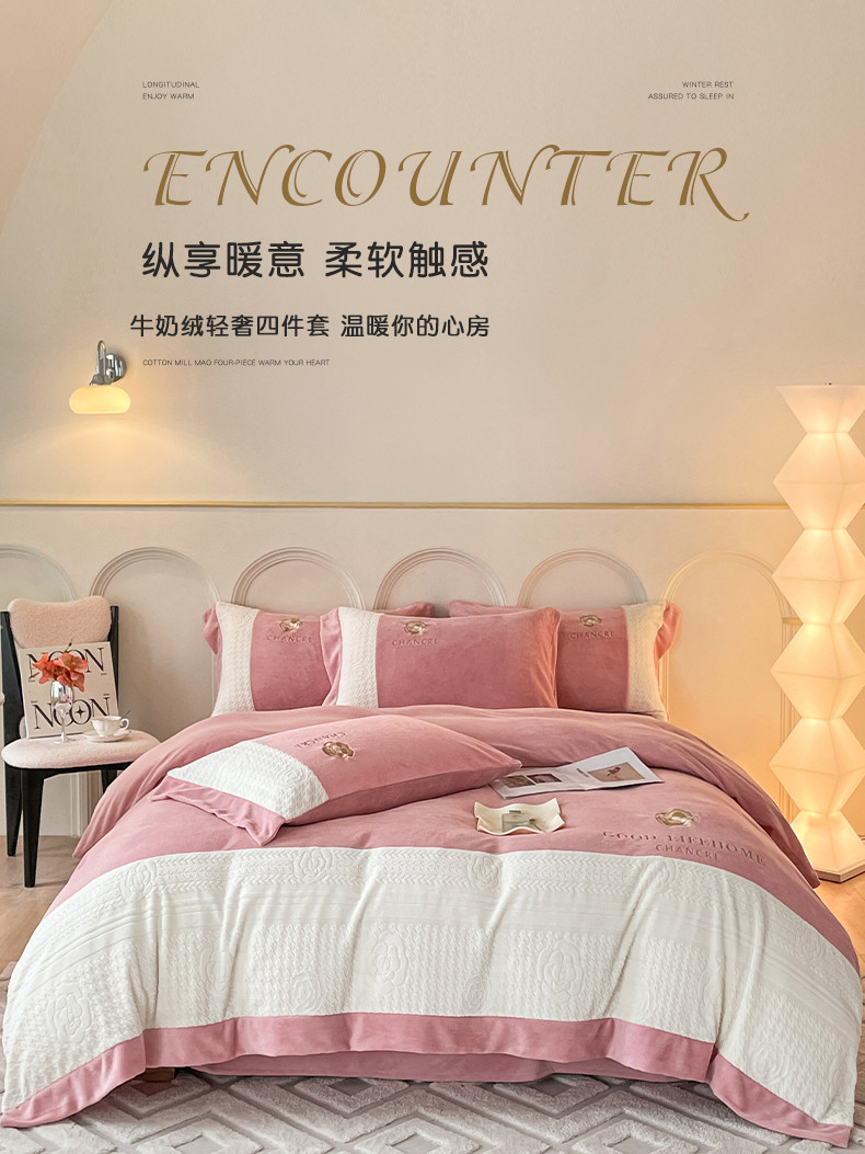 当前位置: 91家纺网 > 商品网购 > 床品套件 > 四件套 > 牛奶绒四件套 > 娜娜 2023新款牛奶绒三拼轻奢风四件套