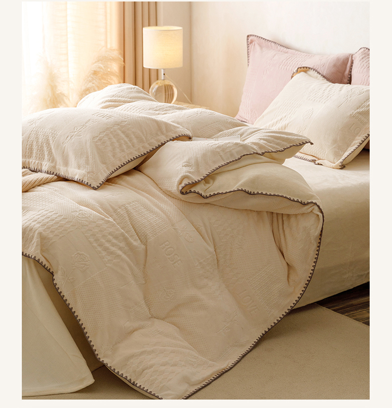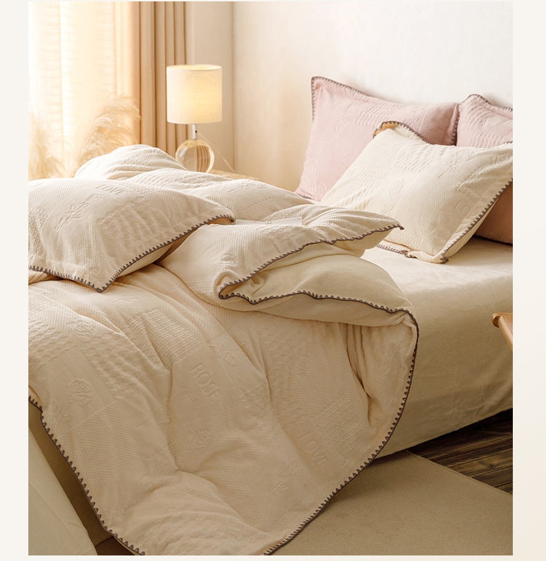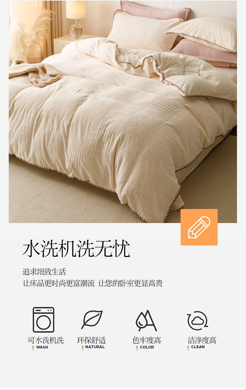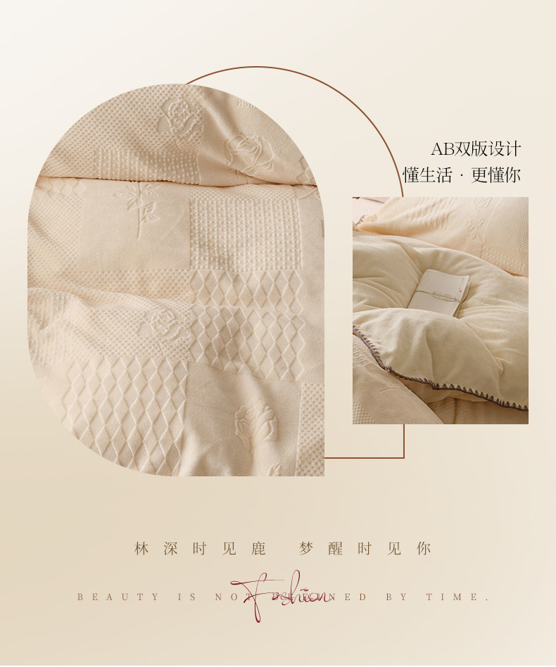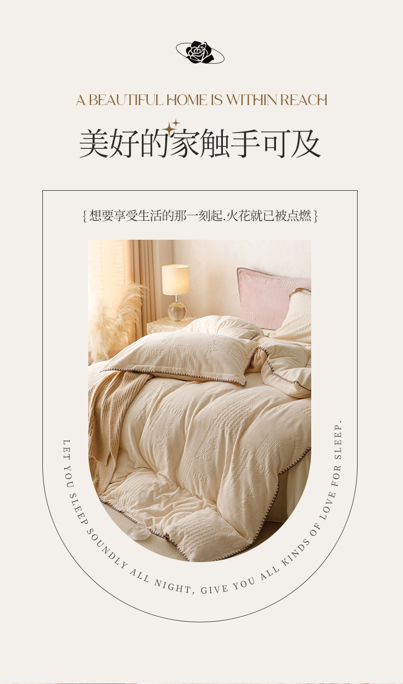 商品名称: 艾莱 2023新款贝壳边加厚牛奶绒四件套-玫瑰爱人 玫瑰爱人-米色