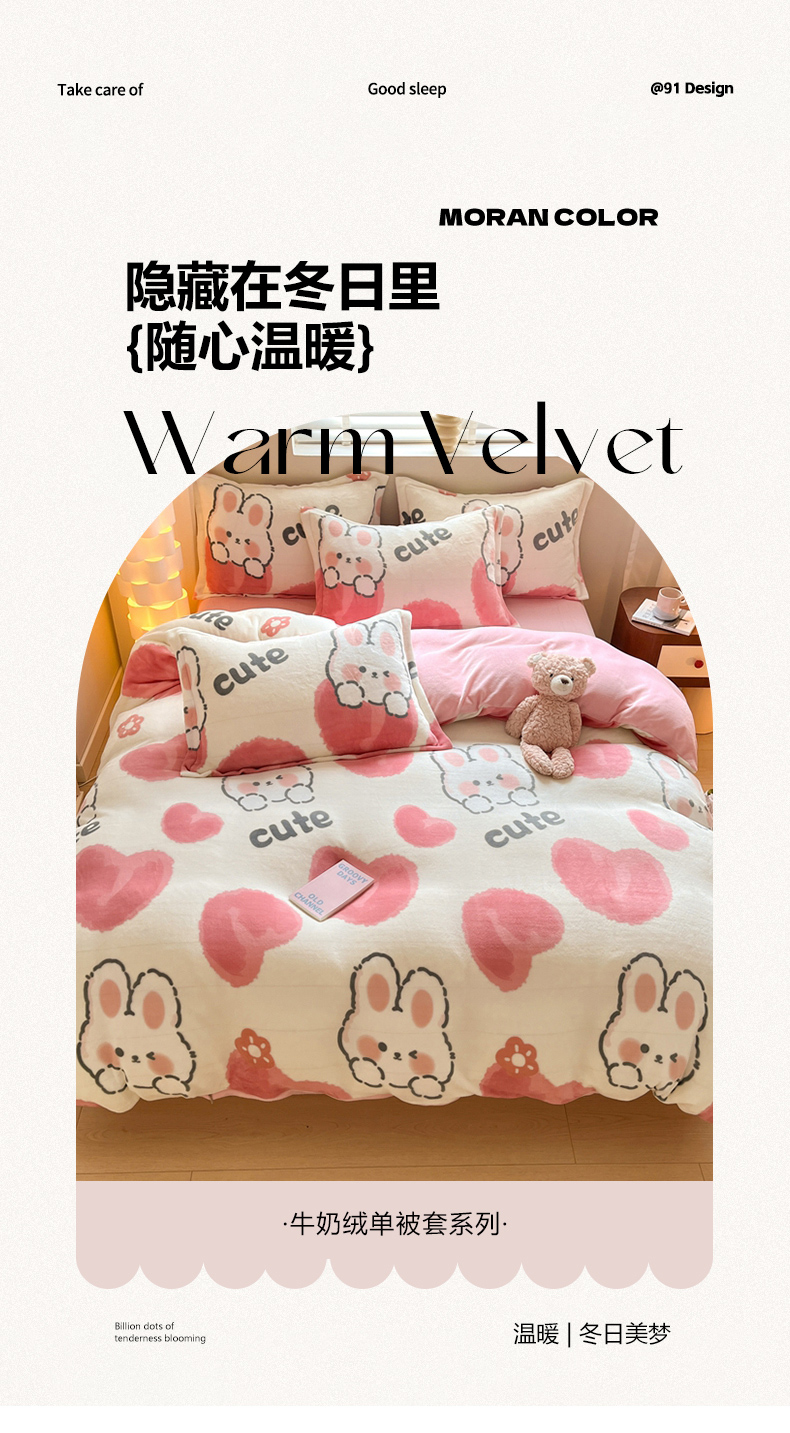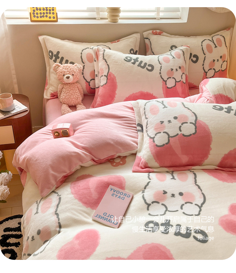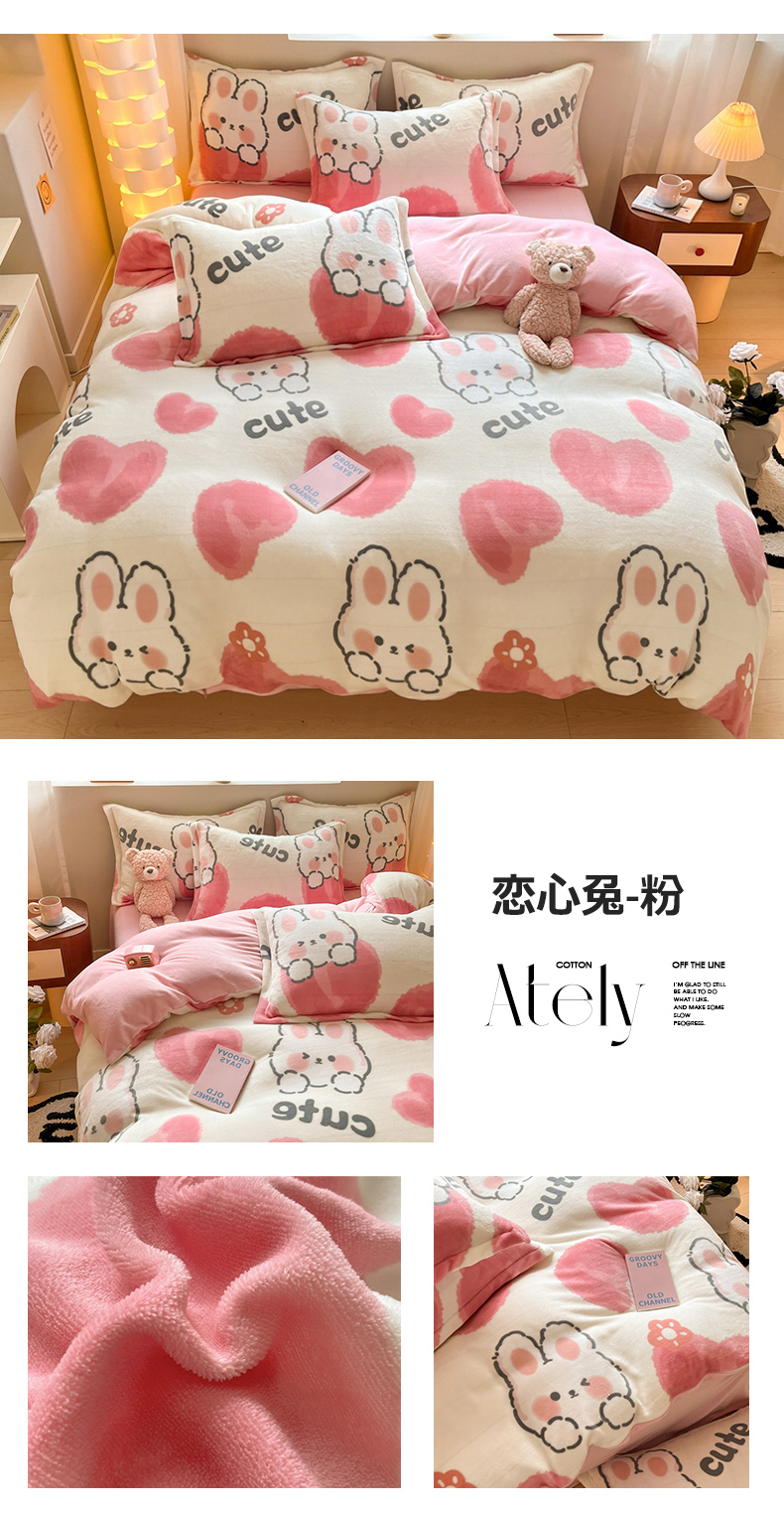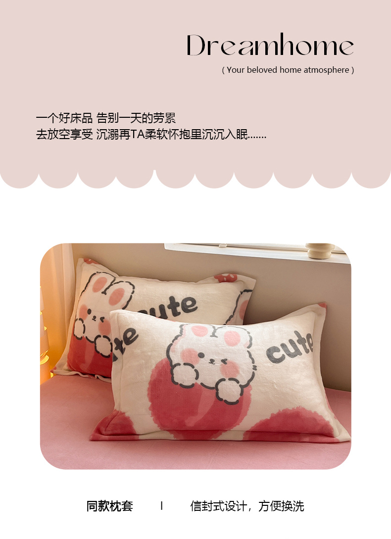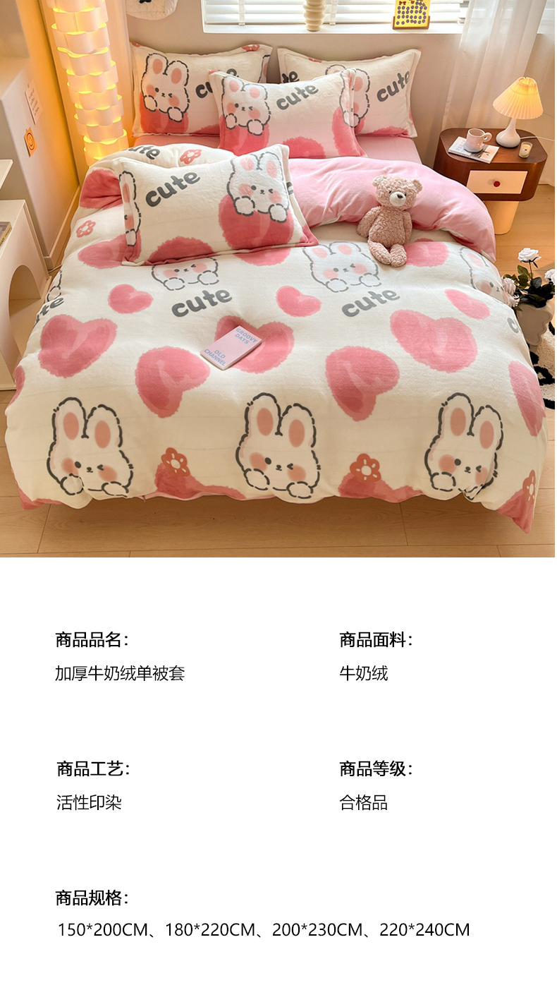 商品名称:逸尚阁 2024新款高克重牛奶绒印花单被套(包含买家秀) 恋心兔-粉