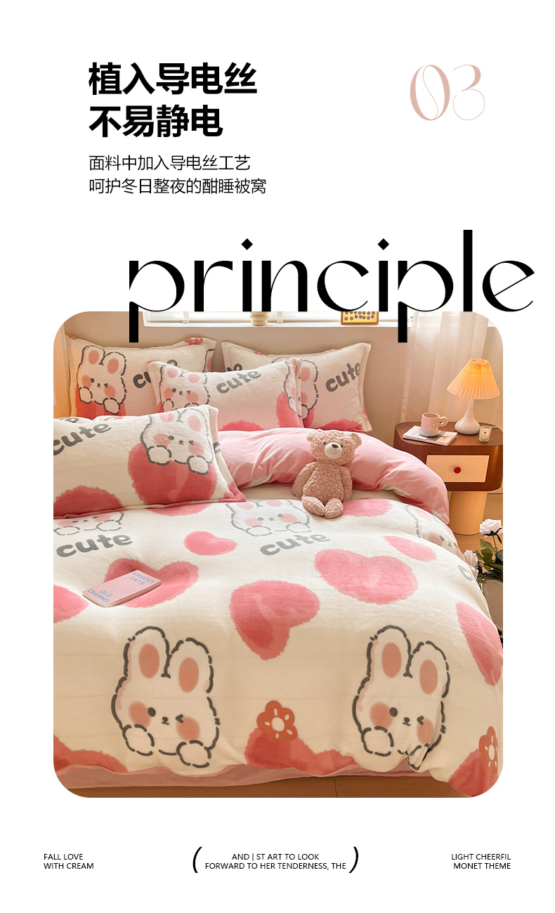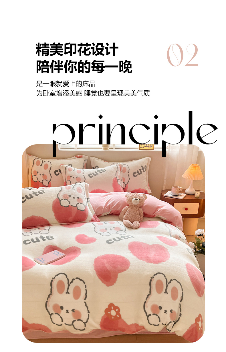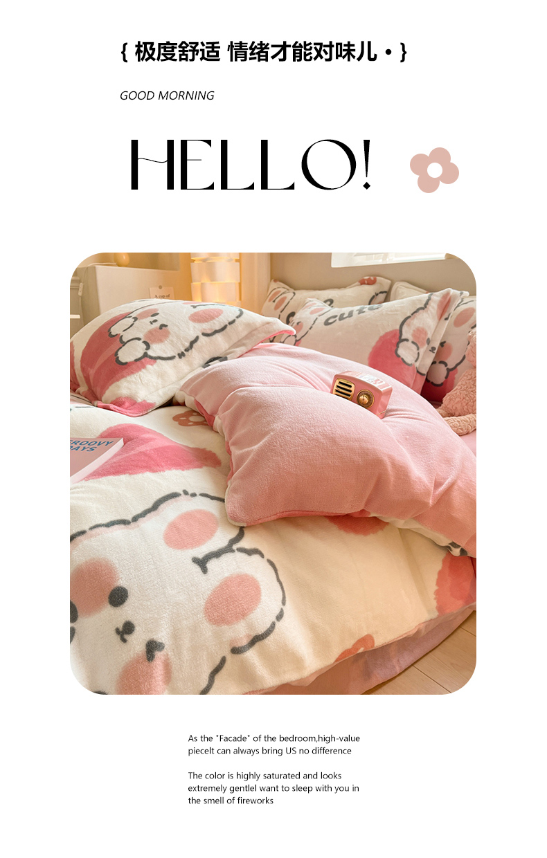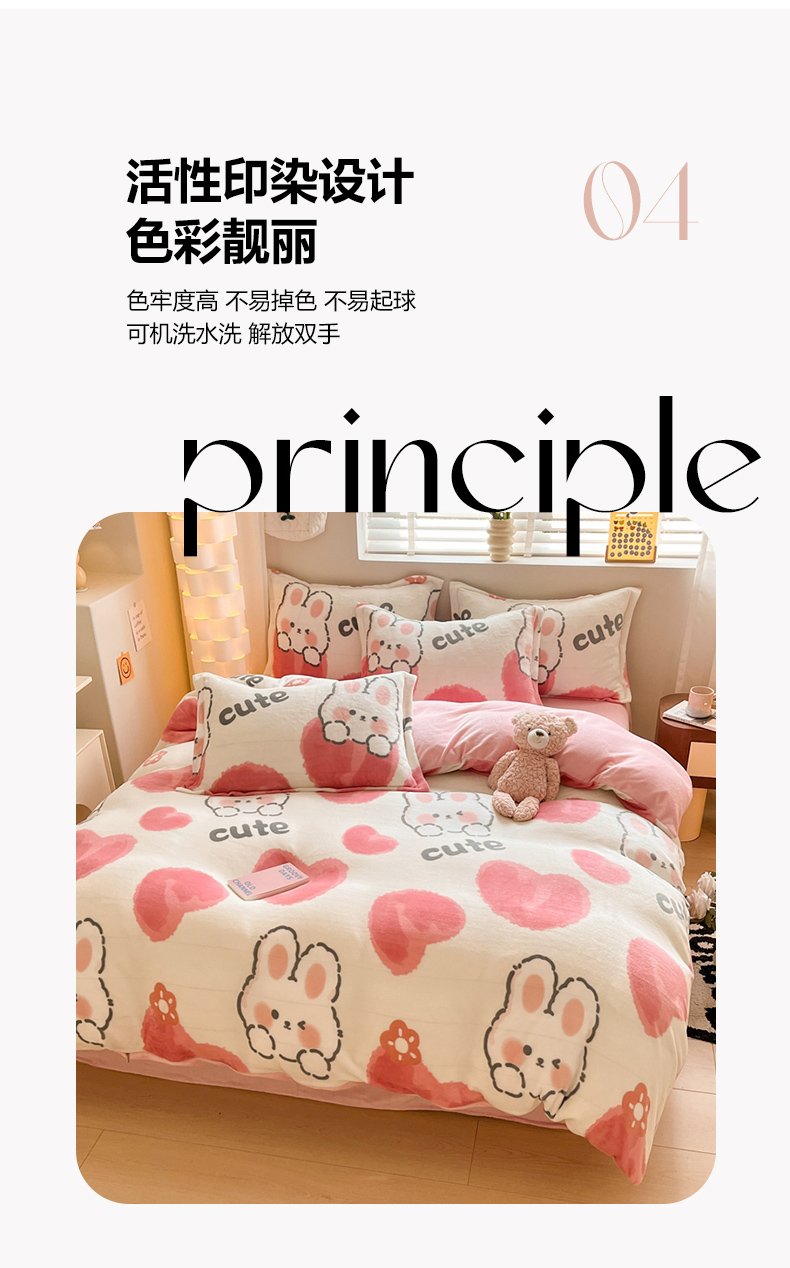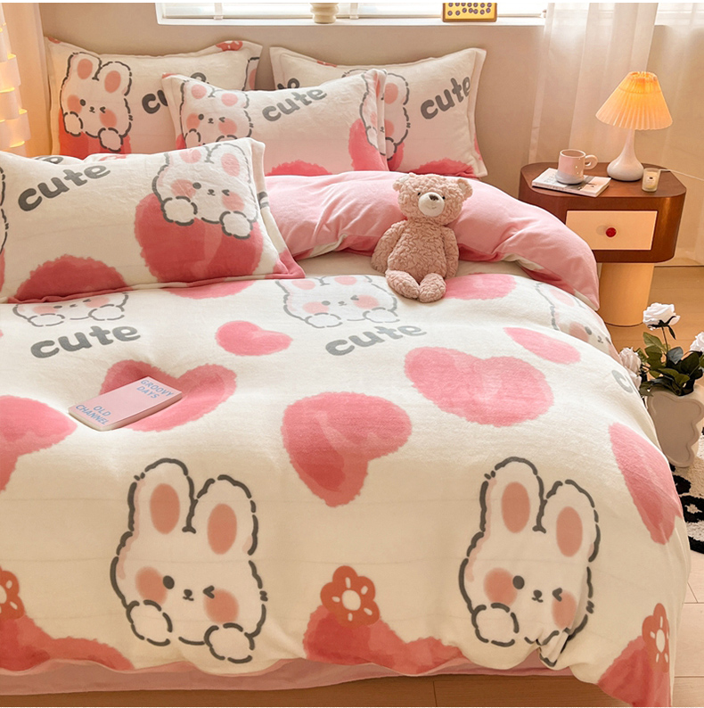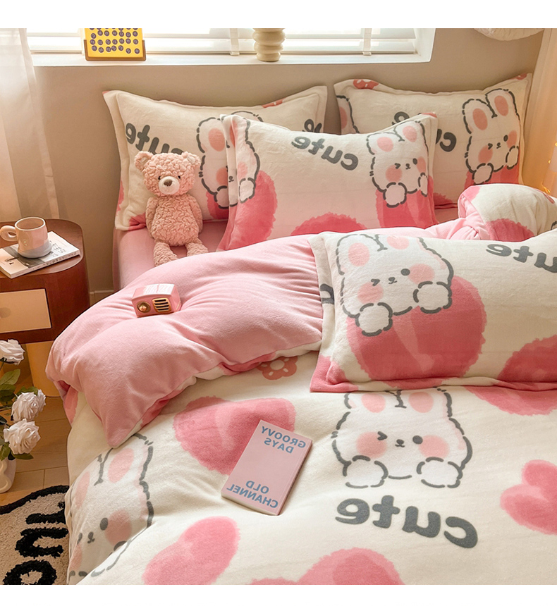 商品名称:逸尚阁 2024新款高克重牛奶绒印花单被套(包含买家秀) 恋心兔-粉