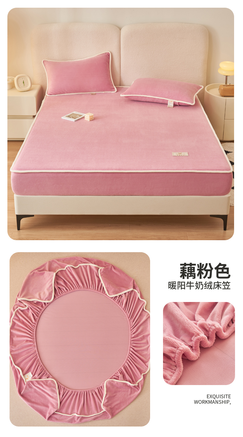 • 91家纺网 家纺一手货源 找家纺 21度C 2023新款加厚暖阳绒床笠 暖阳-藕粉色