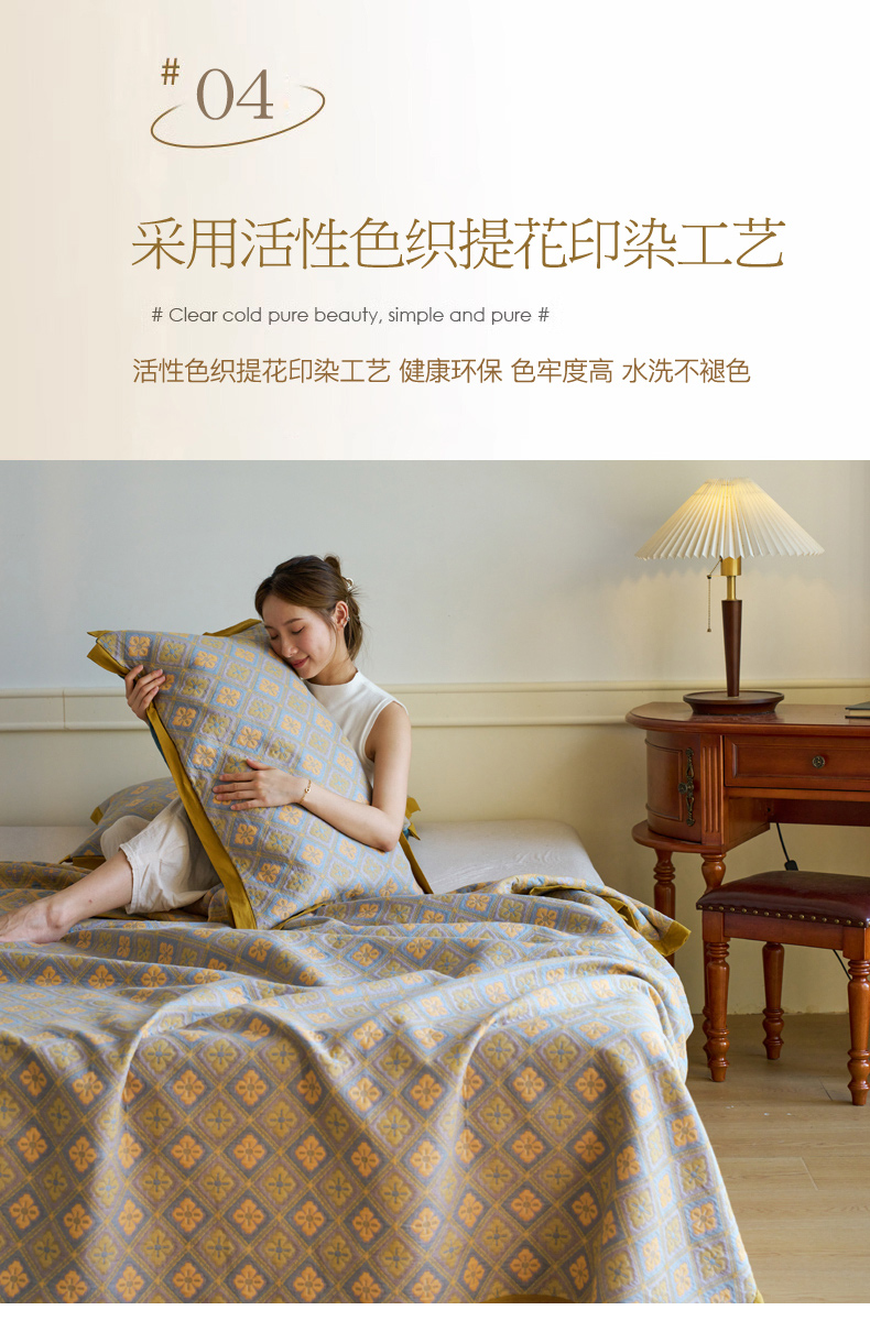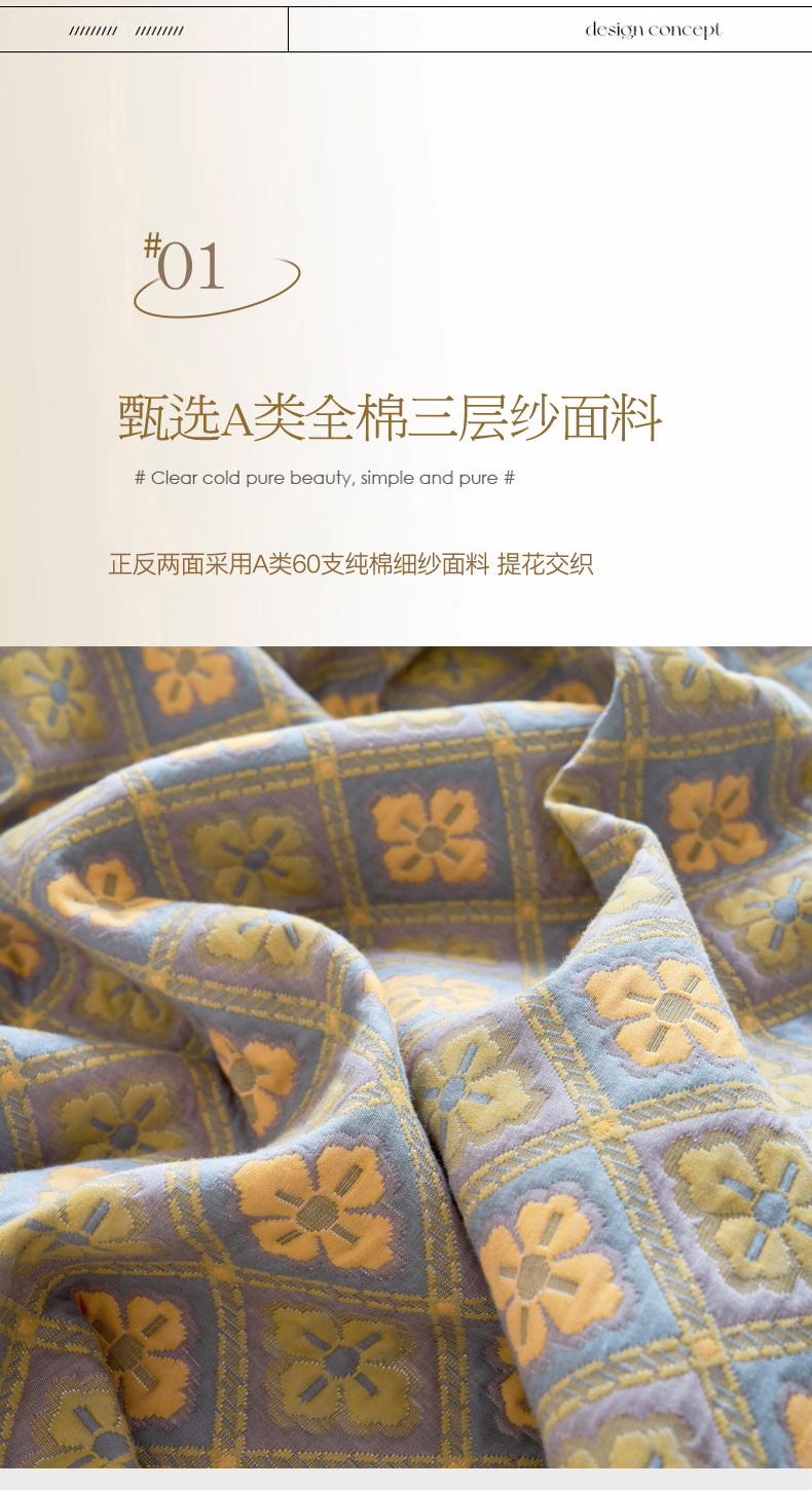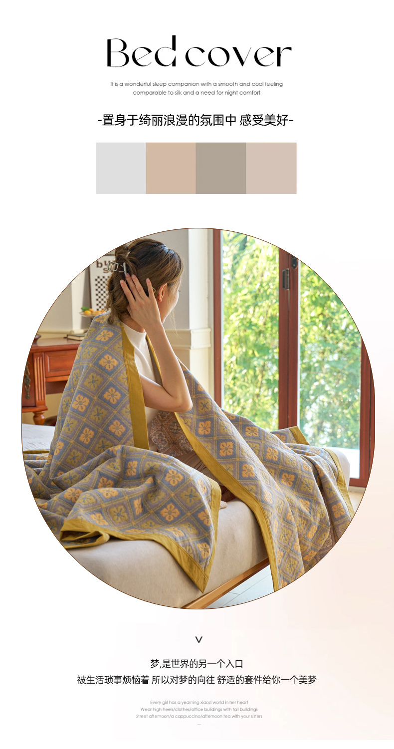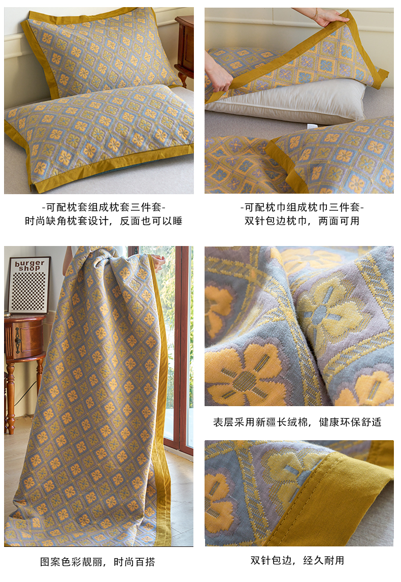 商品名称:棠薇 2023新款秋冬全棉三层纱床盖多功能纱布毯 格韵黄