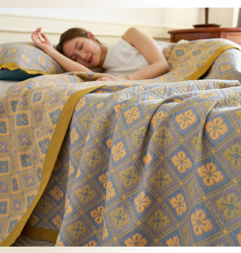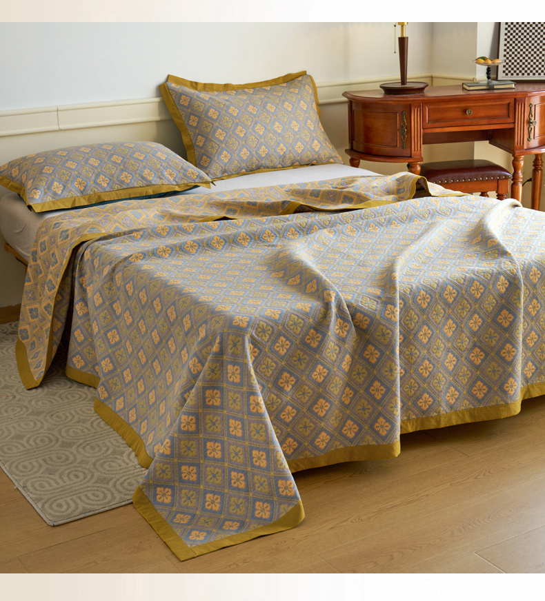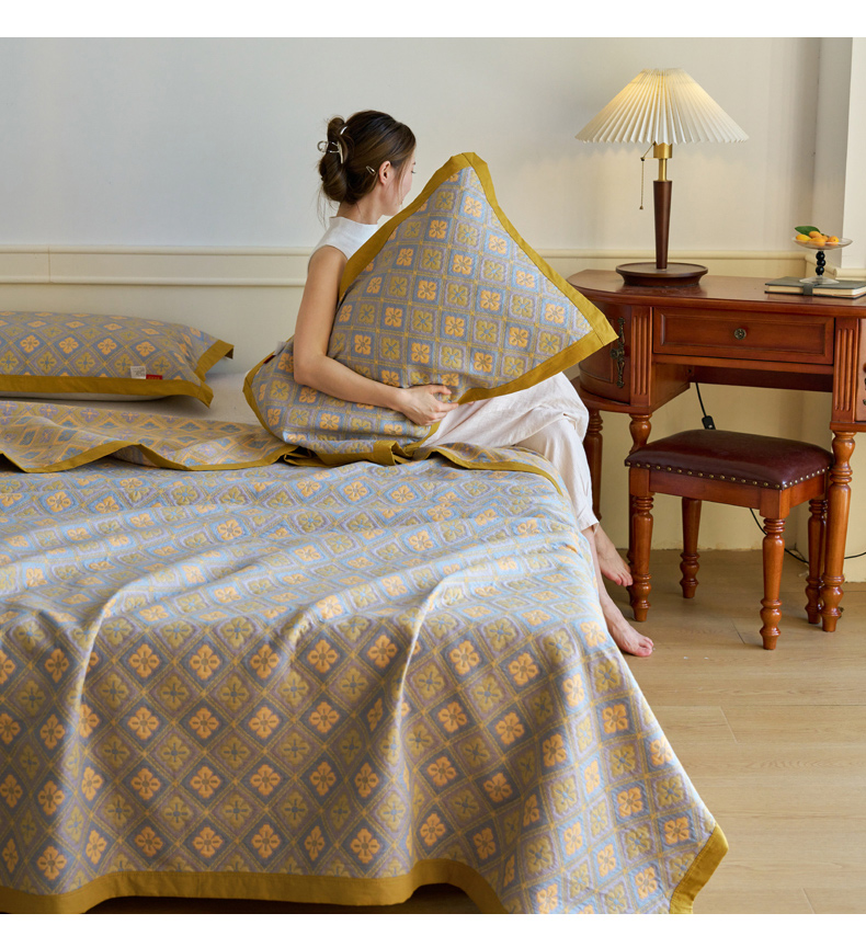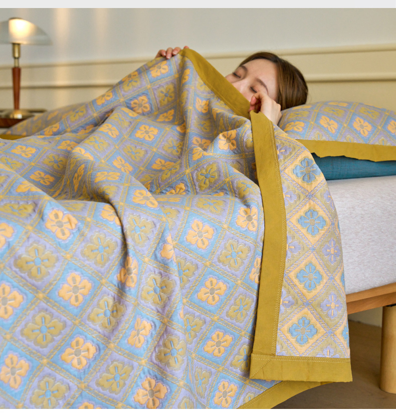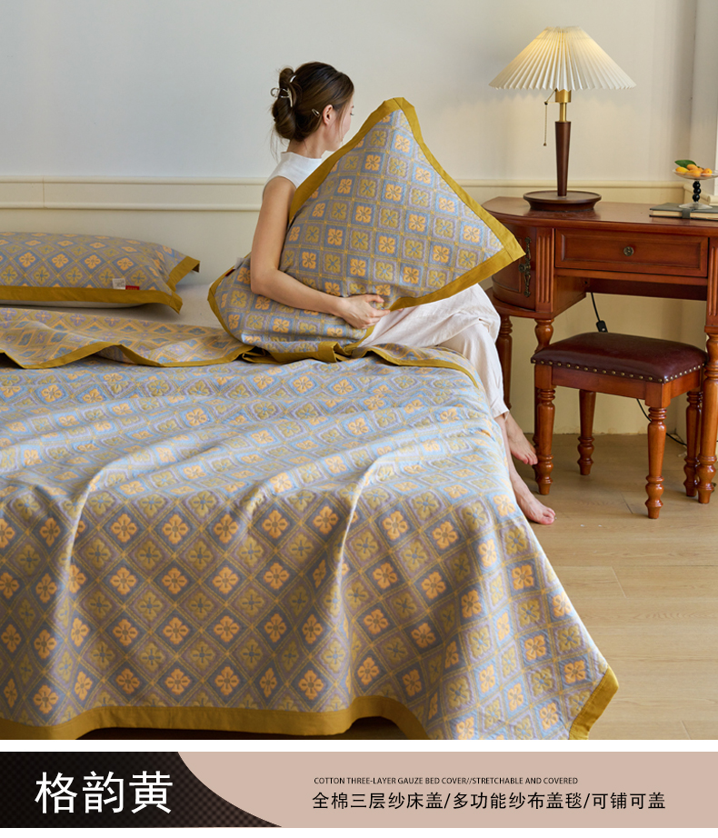 棠薇 2023新款秋冬全棉三层纱床盖多功能纱布毯 格韵黄