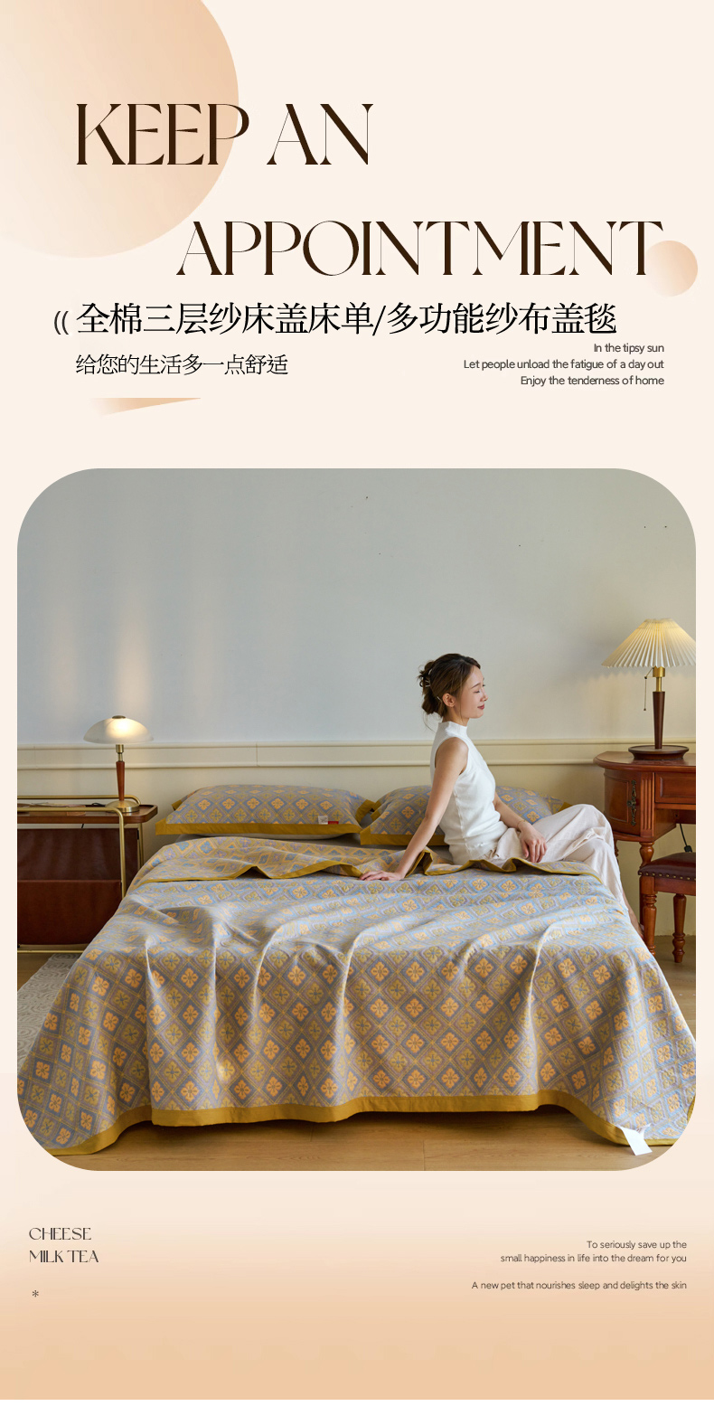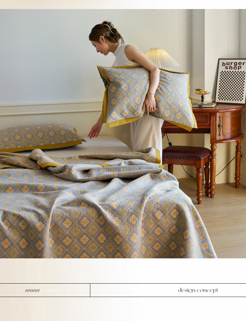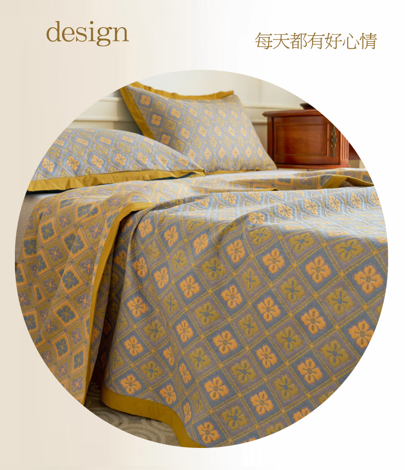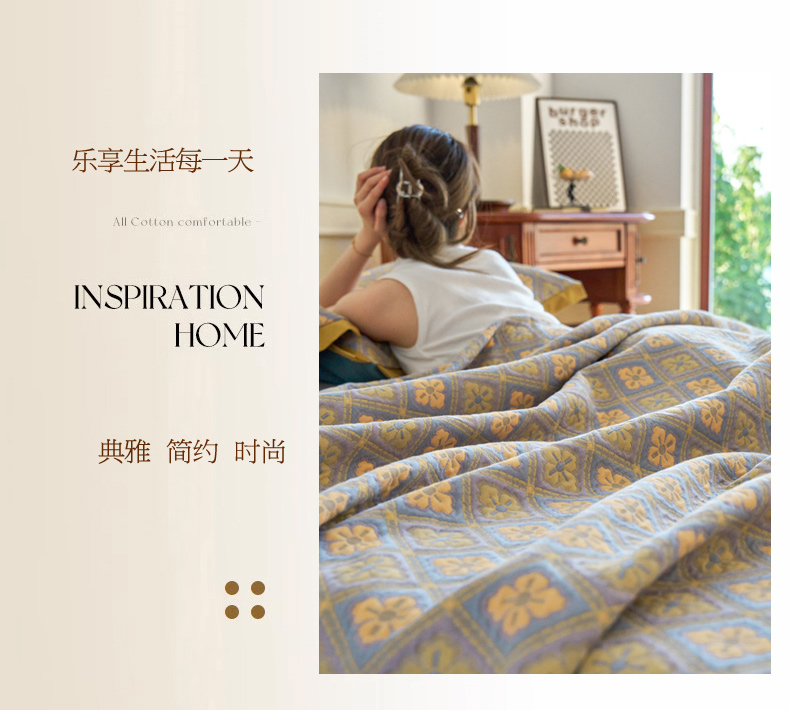 棠薇 2023新款秋冬全棉三层纱床盖多功能纱布毯 格韵黄