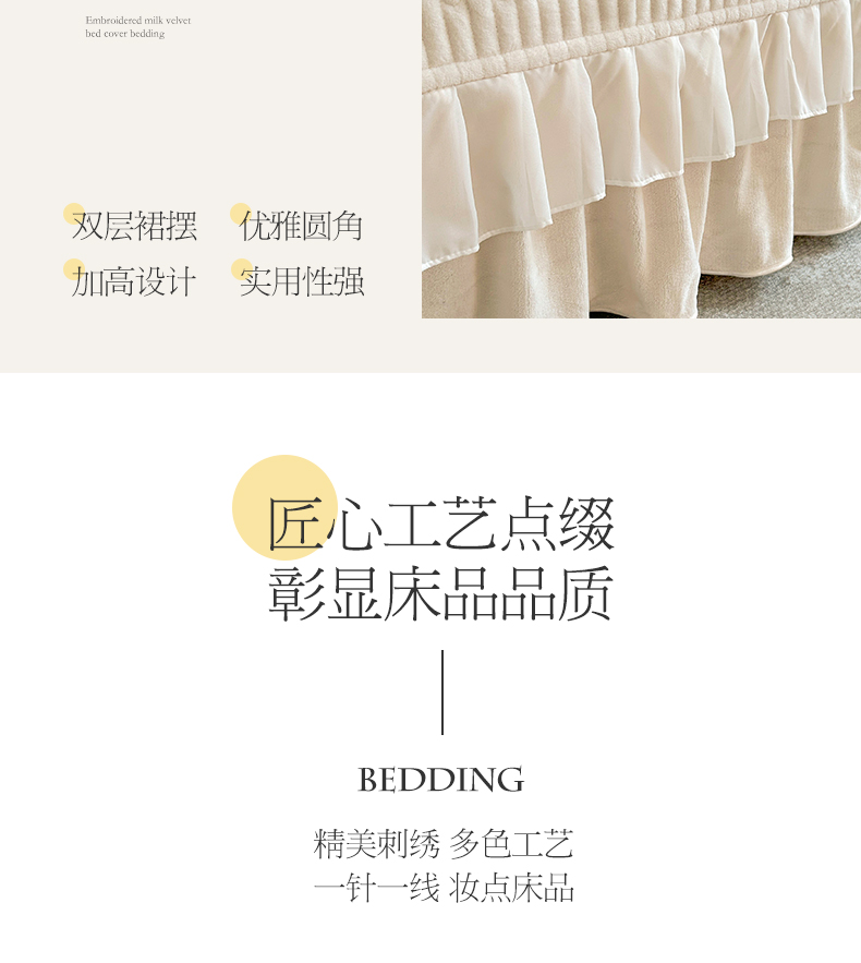 (总)宜凡家纺 2025新款牛奶绒雕花拼接刺绣床裙四件套,晨雾蔷薇,蝶恋花语,花野漫屿,蕾丝蝶音,洛可可影,雾蓝漫织,香槟漫月