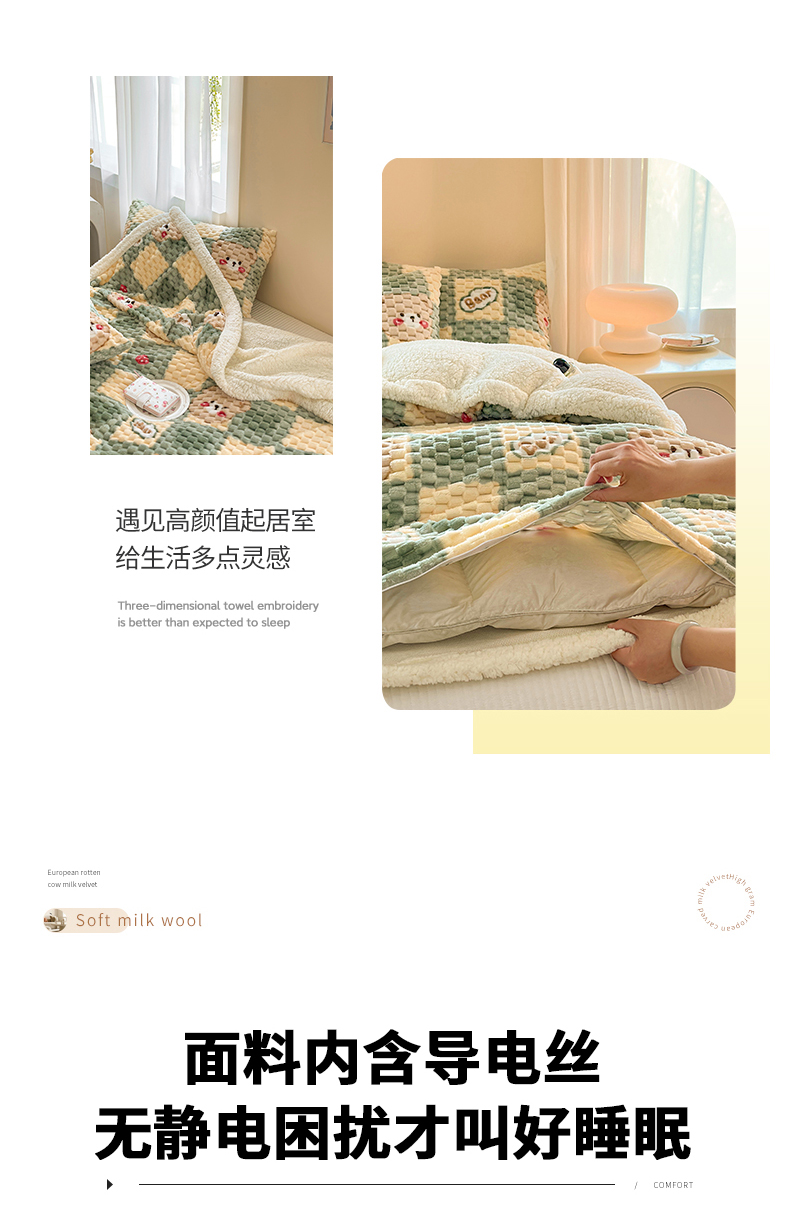 (总)网客家纺 2025新款羊毛绒牛奶绒夹棉床盖四件套,豹点-深灰,简格-黑色,简格-咖色,空间-红色,泥点-灰色,泥点-咖色,维奥-灰色,斜格-灰色,斜格-墨绿