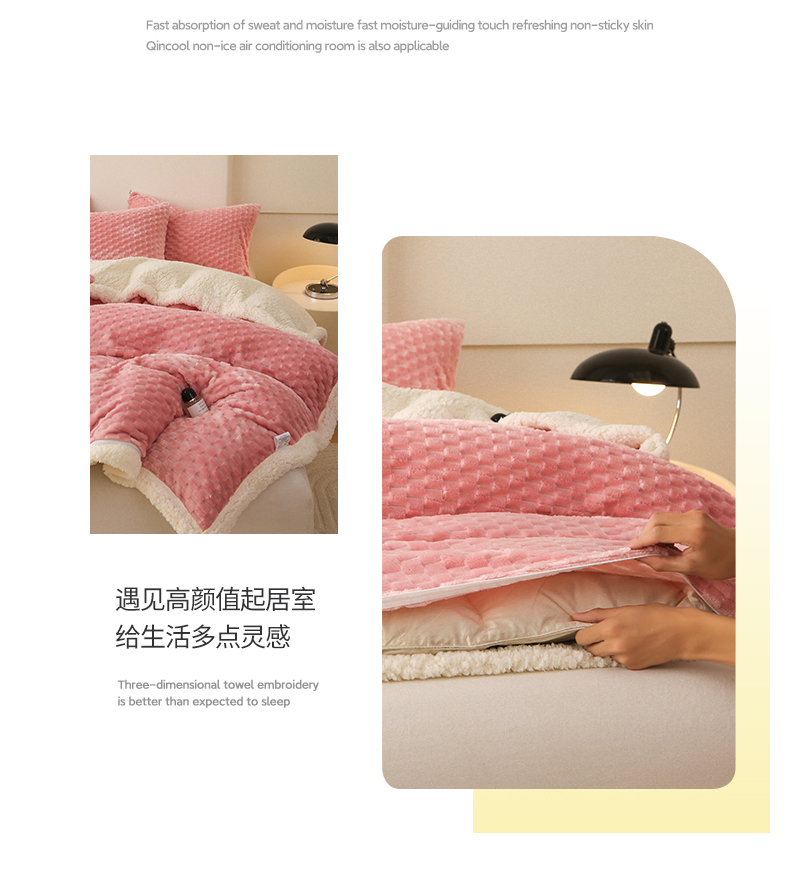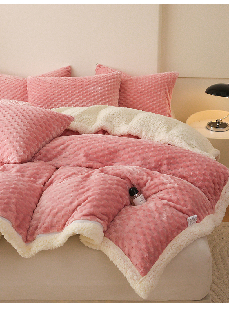 (总)网客家纺 2025新款羊毛绒牛奶绒夹棉床盖四件套,豹点-深灰,简格-黑色,简格-咖色,空间-红色,泥点-灰色,泥点-咖色,维奥-灰色,斜格-灰色,斜格-墨绿