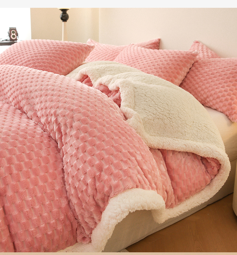 网客 2024新款多功能豆豆绒素色被套毯 公主粉