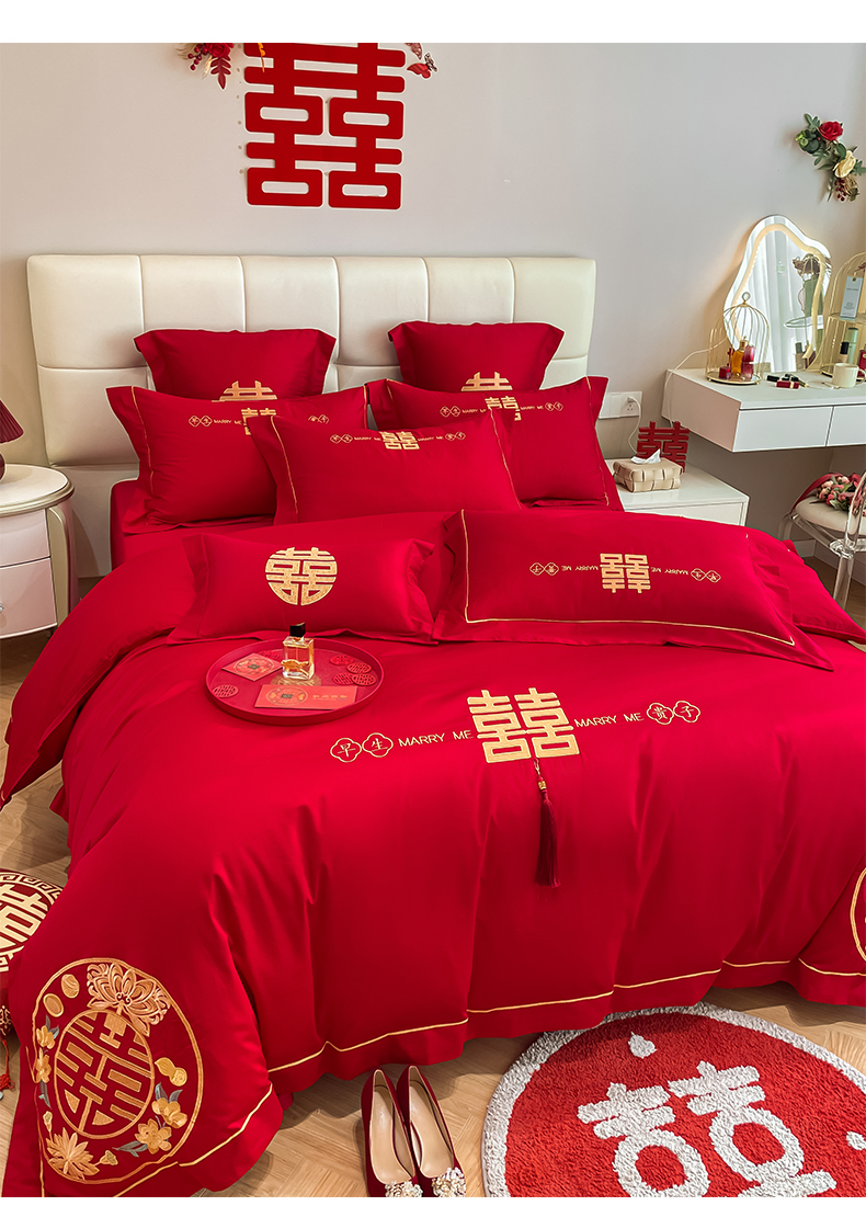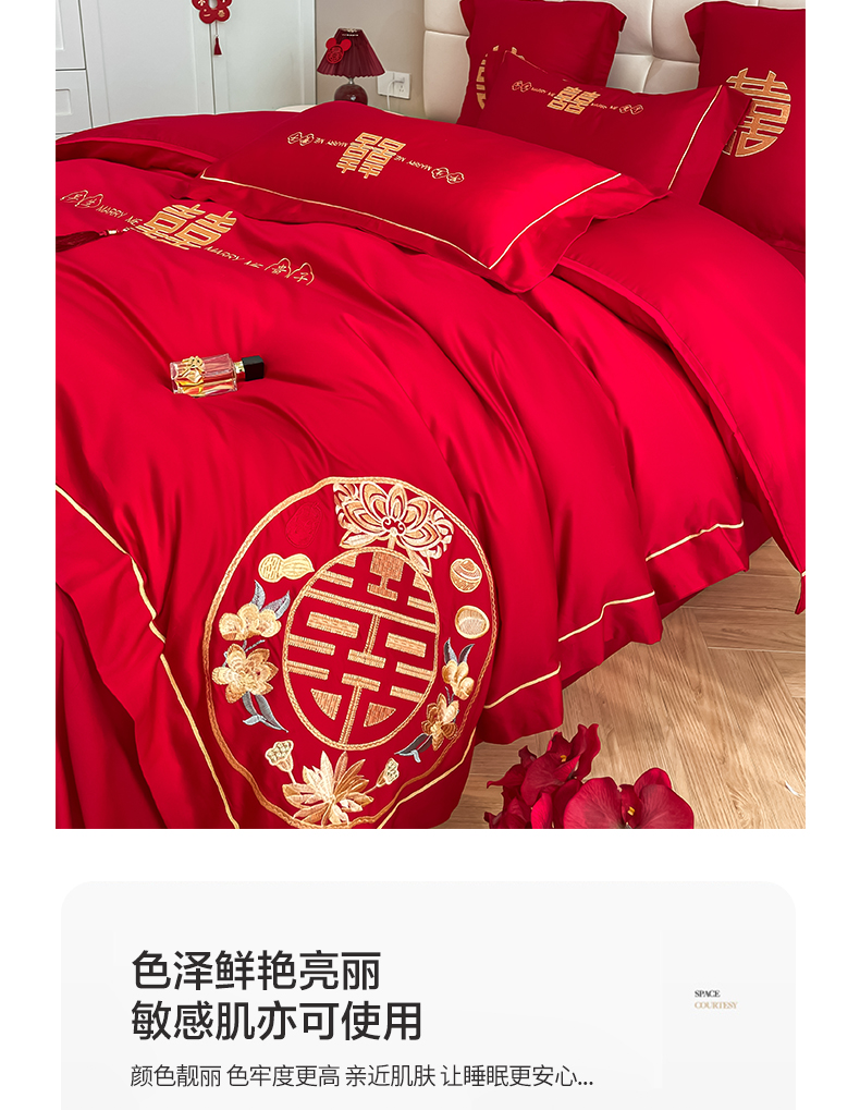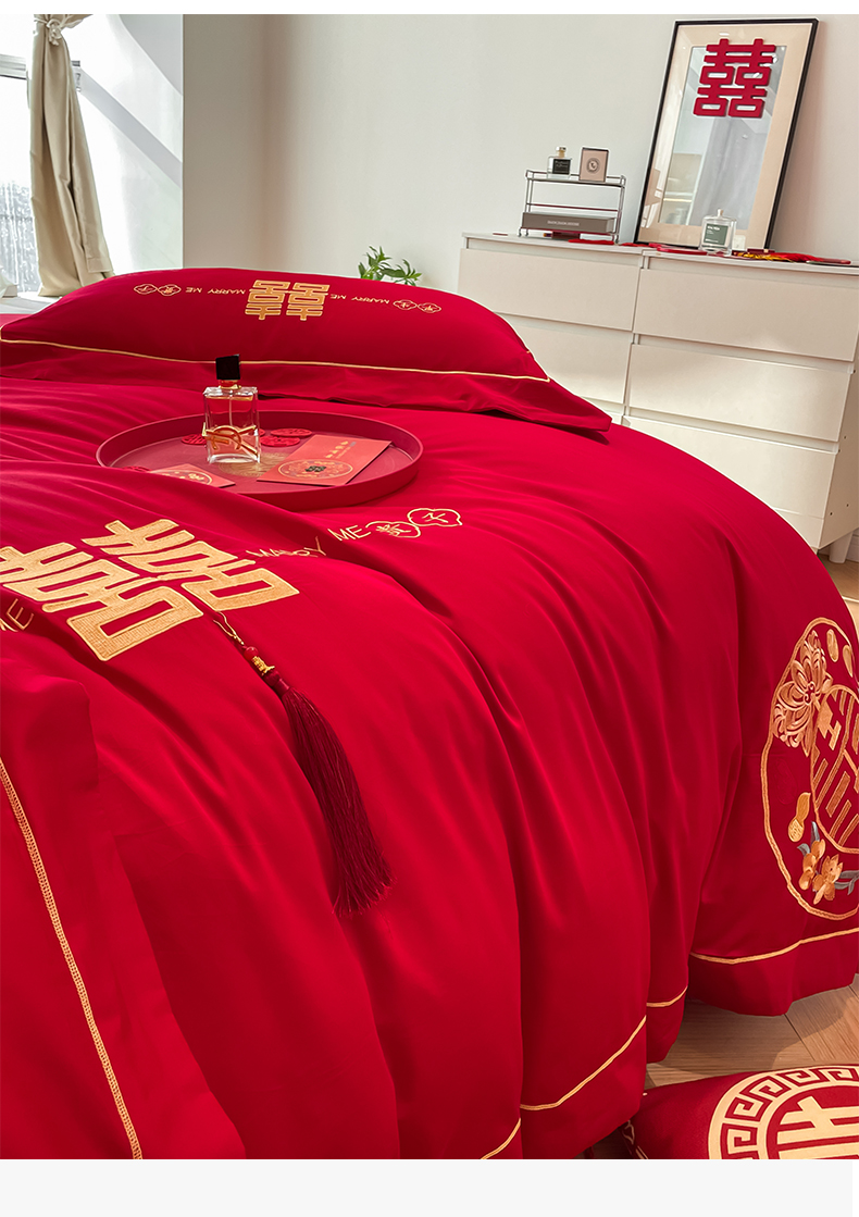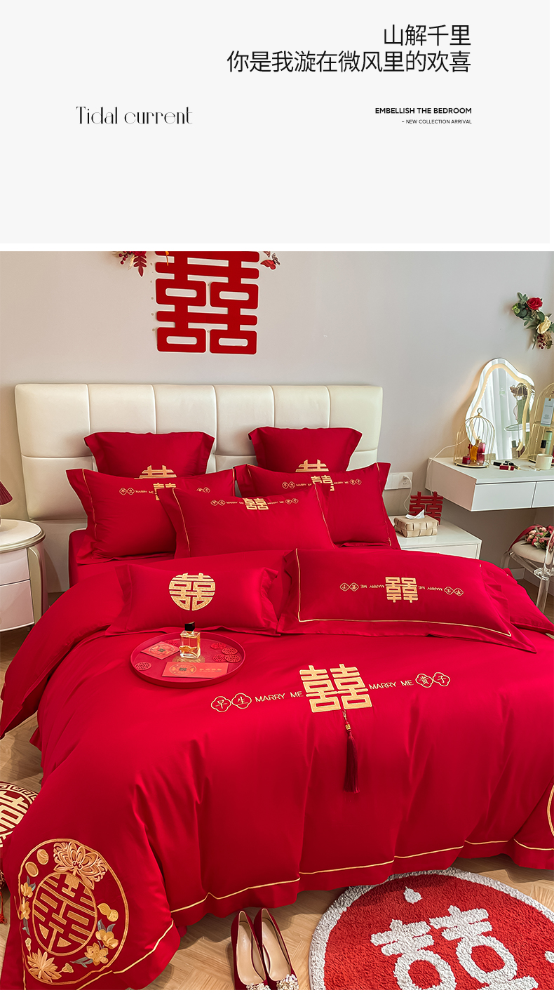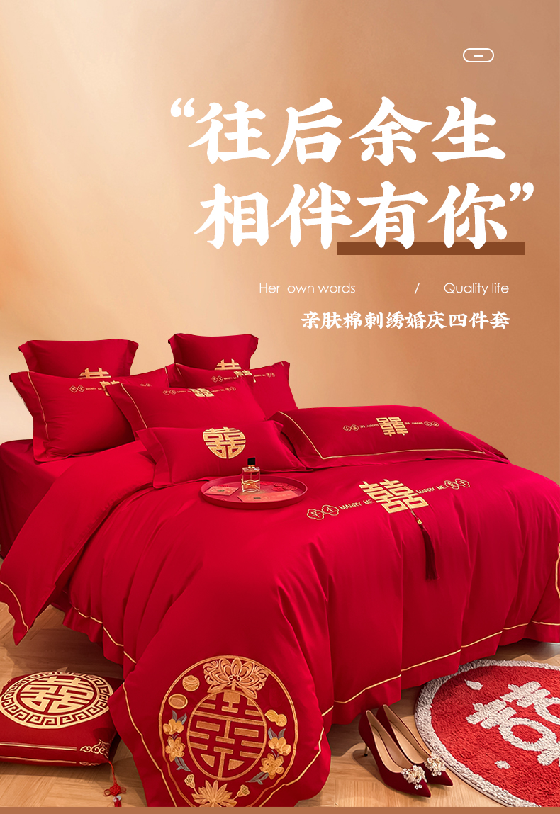 当前位置: 91家纺网 > 商品网购 > 床品套件 > 四件套 > 长绒棉四件套 > 欧乐蒂 2025新款亲肤棉刺绣婚庆四件套 早生贵子