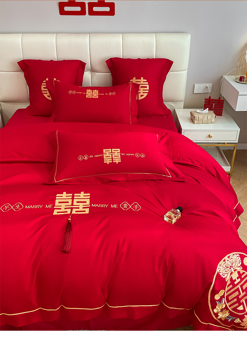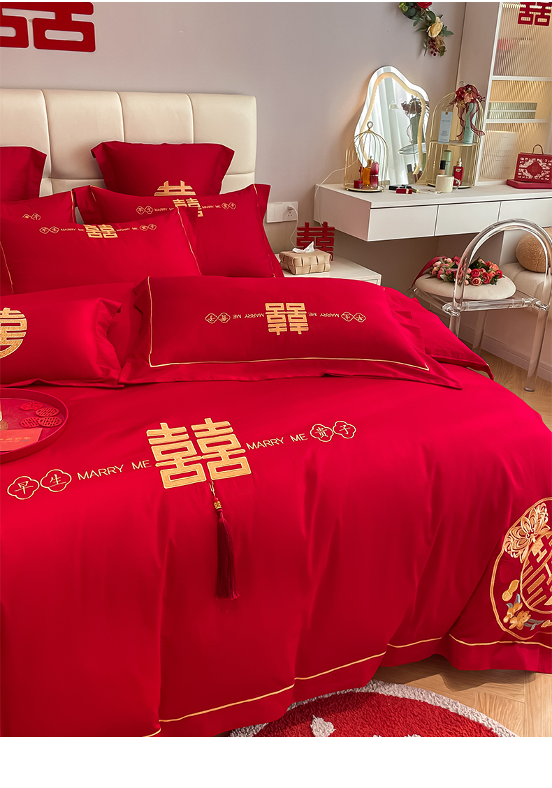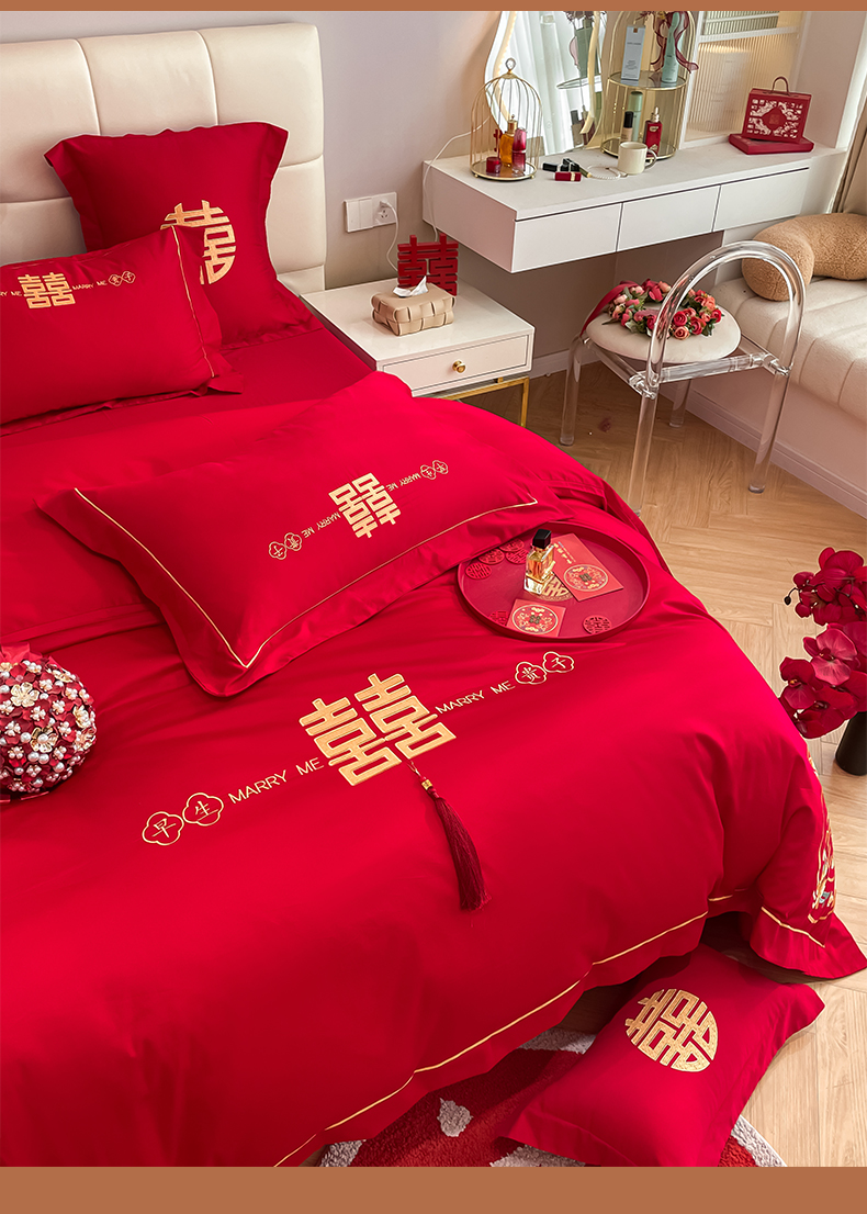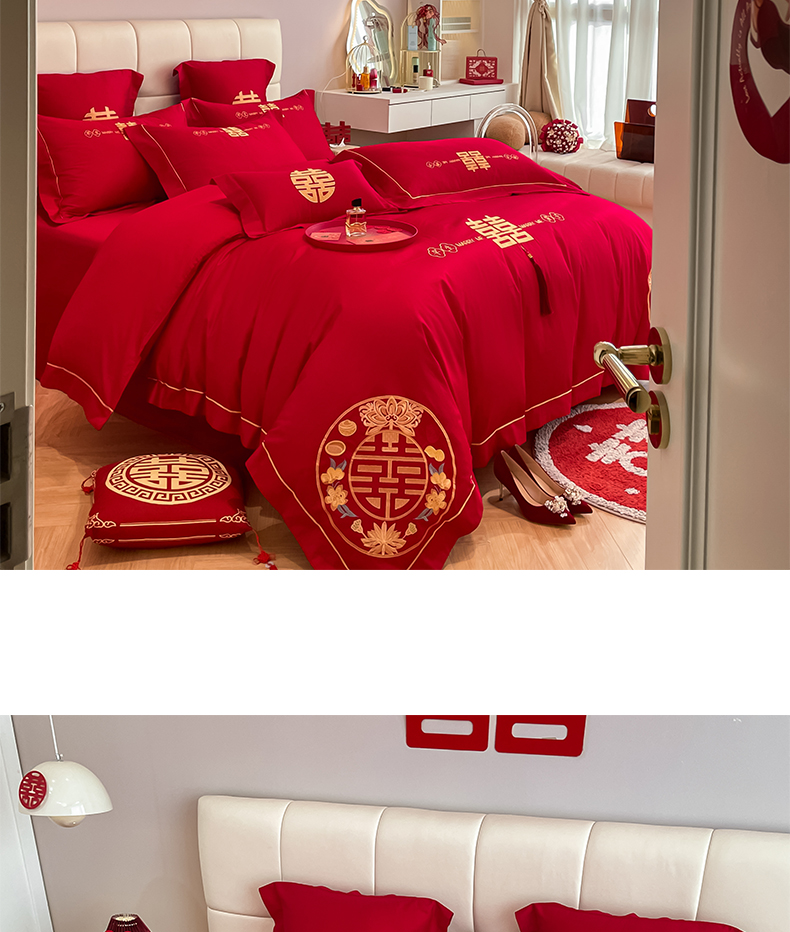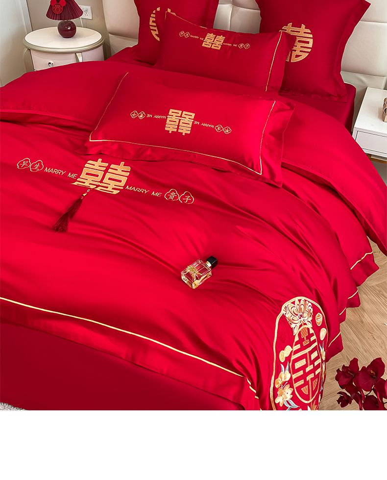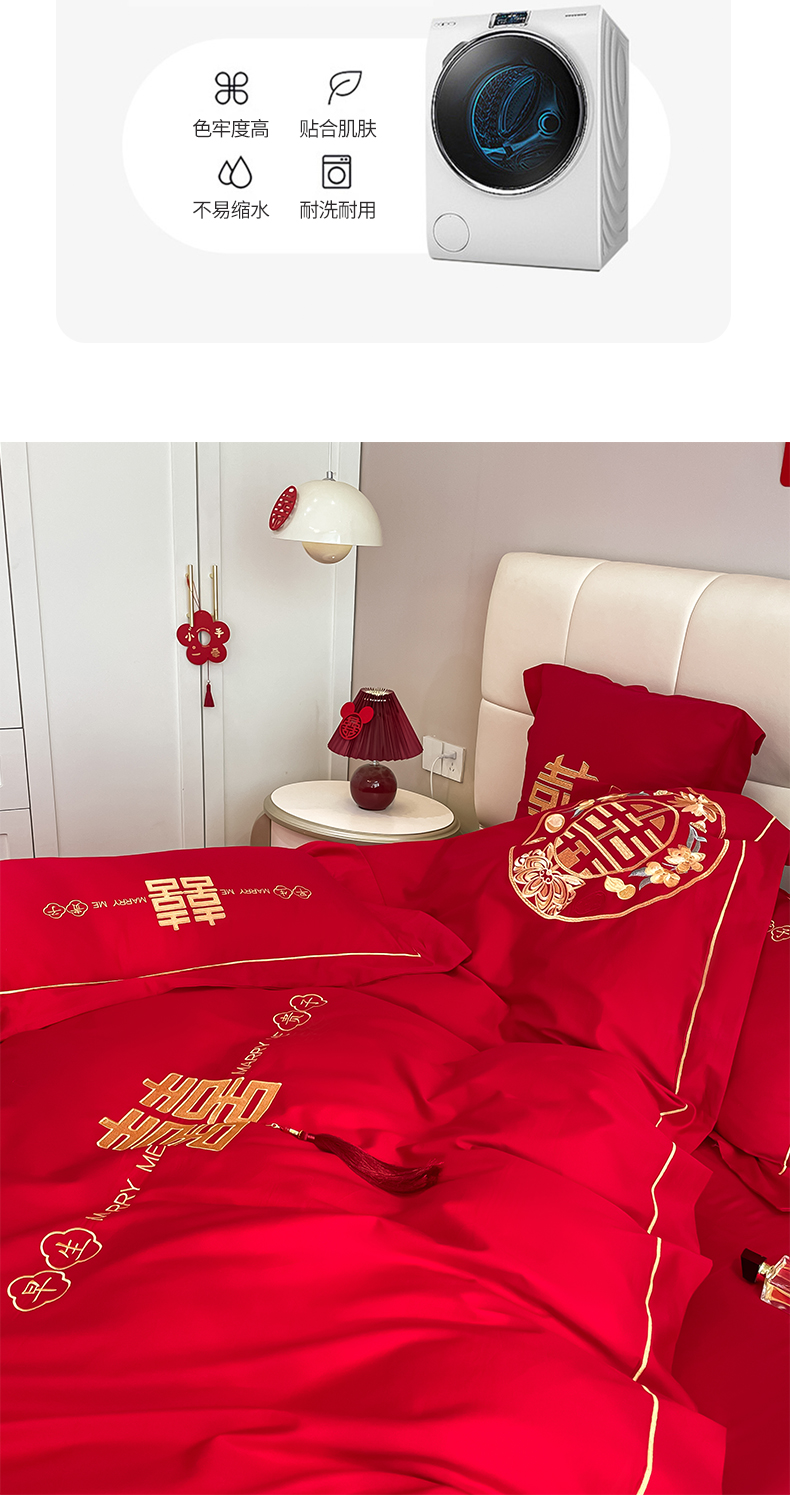 当前位置: 91家纺网 > 商品网购 > 床品套件 > 四件套 > 长绒棉四件套 > 欧乐蒂 2025新款亲肤棉刺绣婚庆四件套 早生贵子