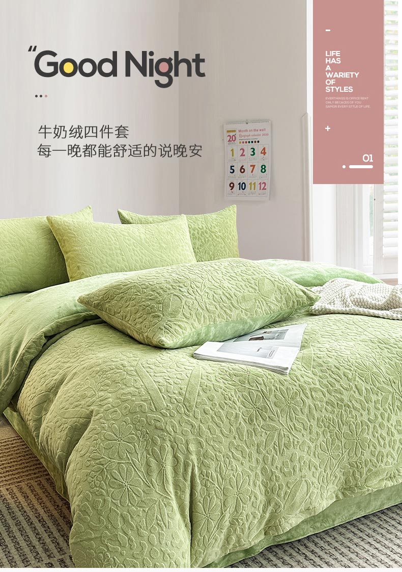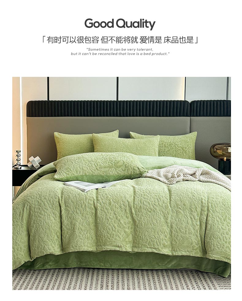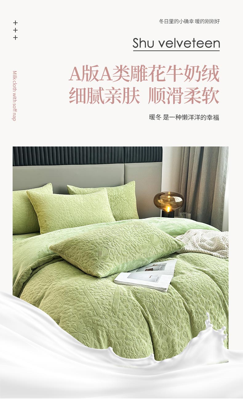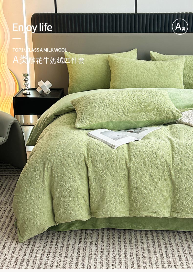 铠畅家纺 2023爆款A类230g立体雕花牛奶绒四件套 飘逸绿