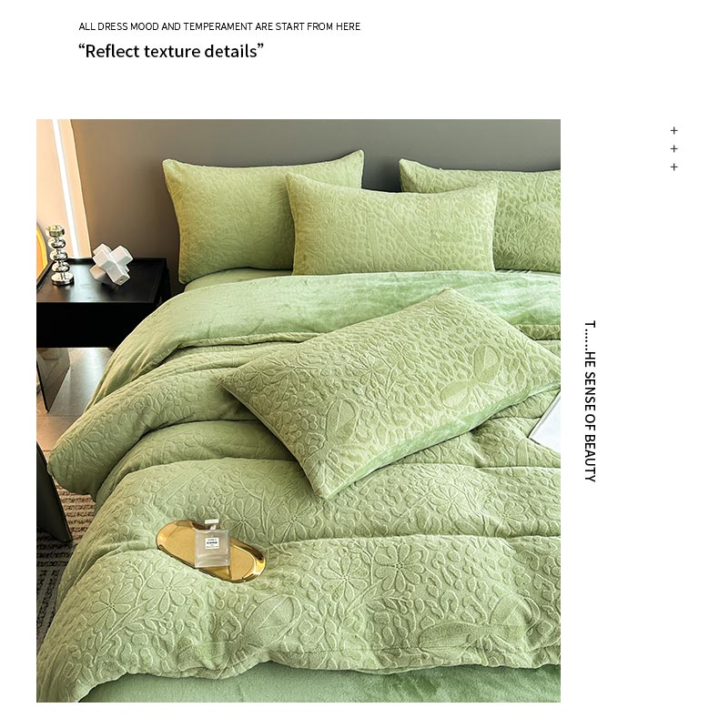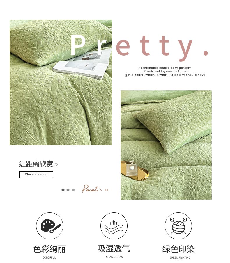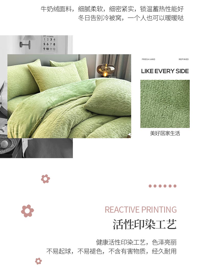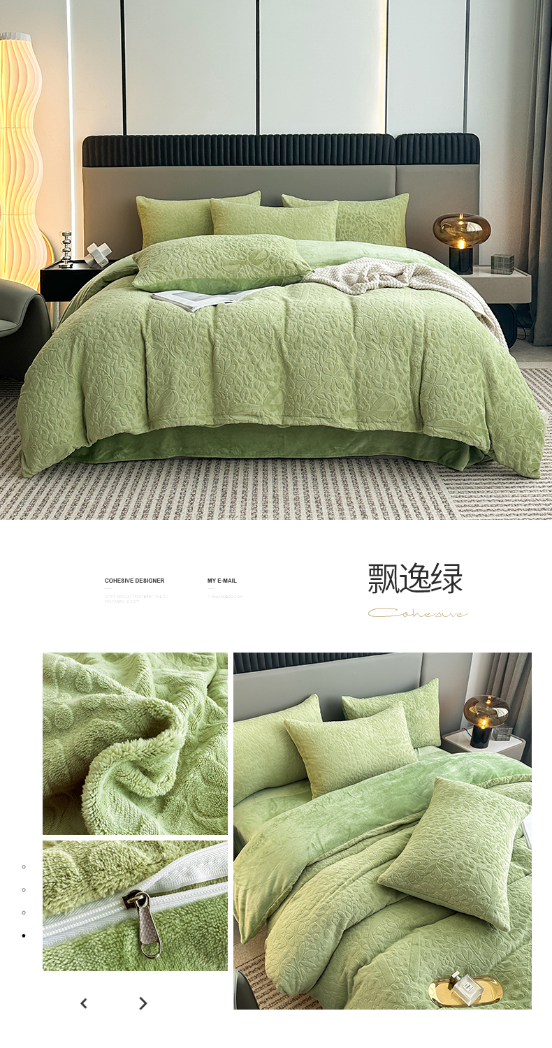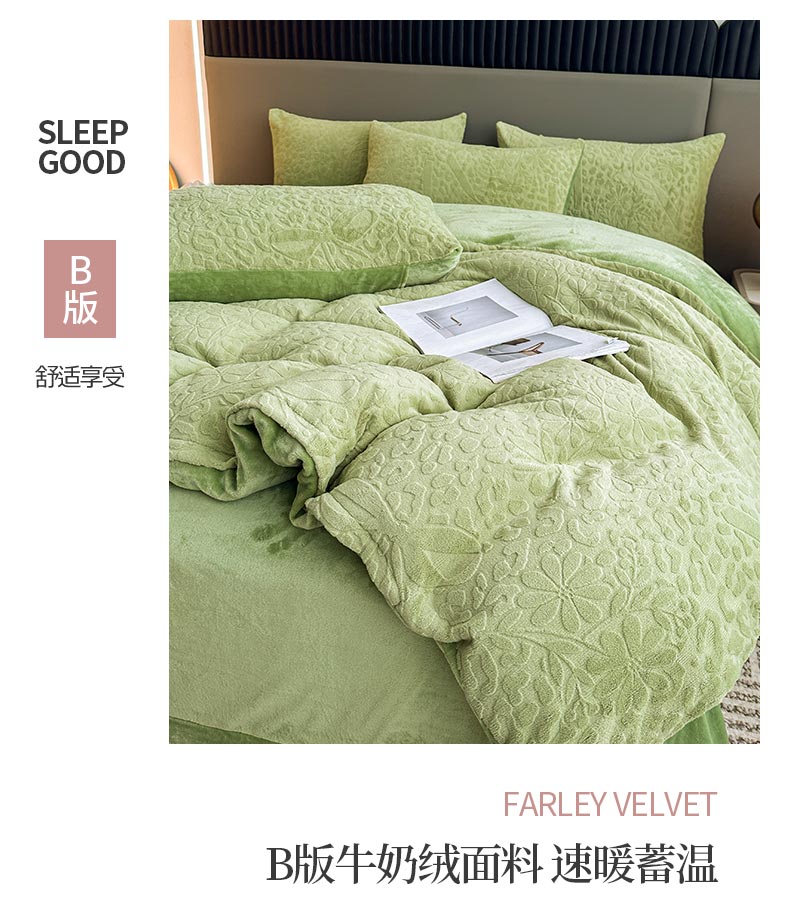 铠畅家纺 2023爆款A类230g立体雕花牛奶绒四件套 飘逸绿