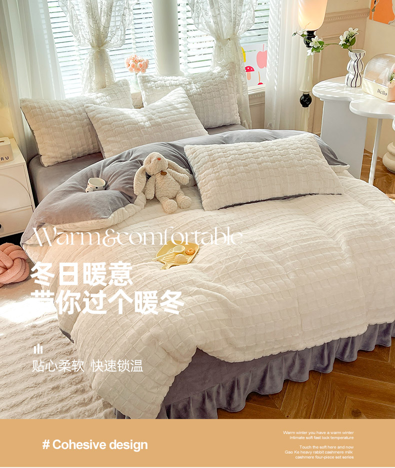 丝印良品 2023新款高克重兔绒牛奶绒四件套 月光白灰