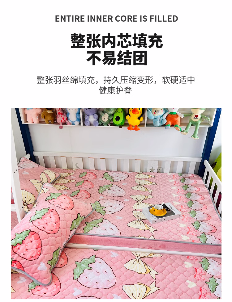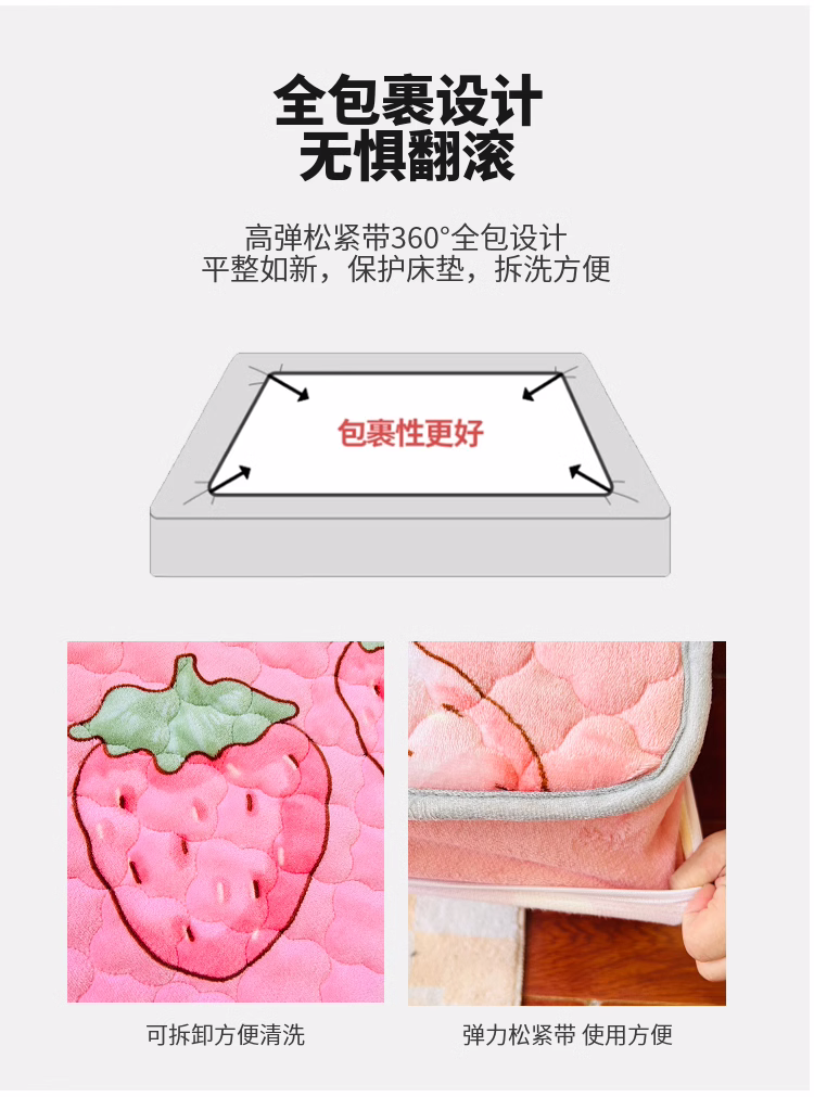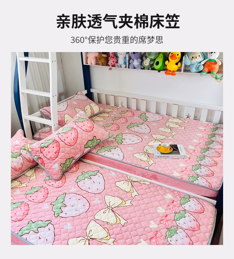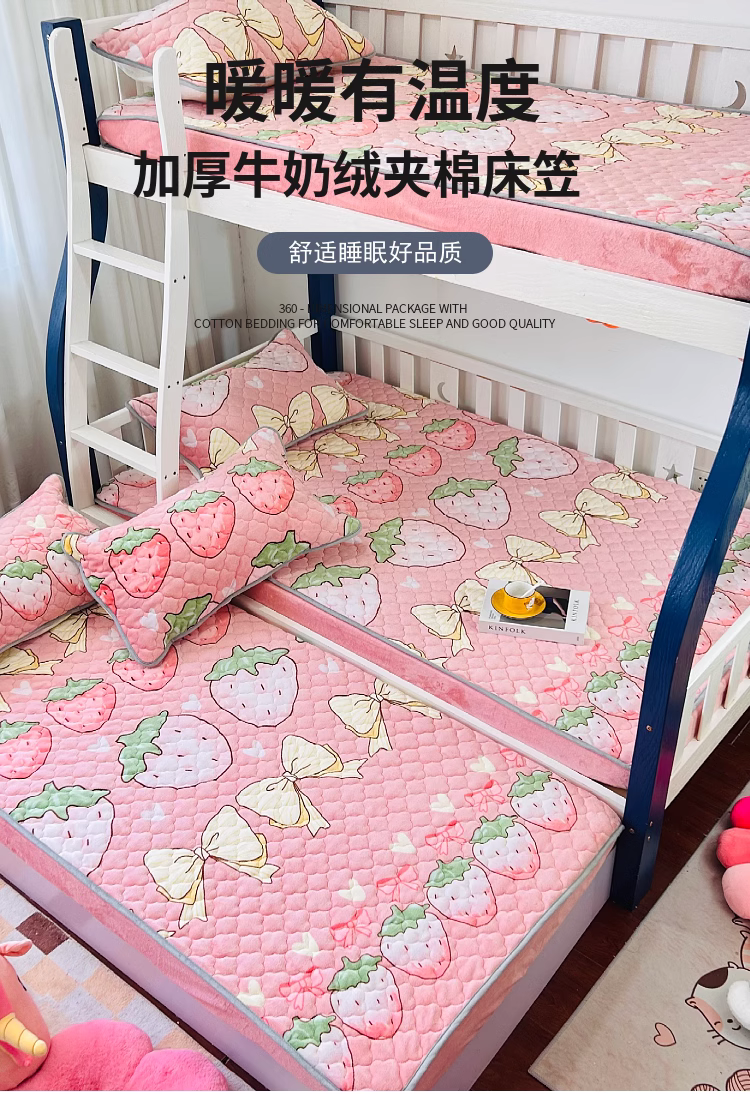 • 91家纺网 家纺一手货源 找家纺 小虾米 2023新款上下床加厚牛奶绒夹棉床笠 草莓