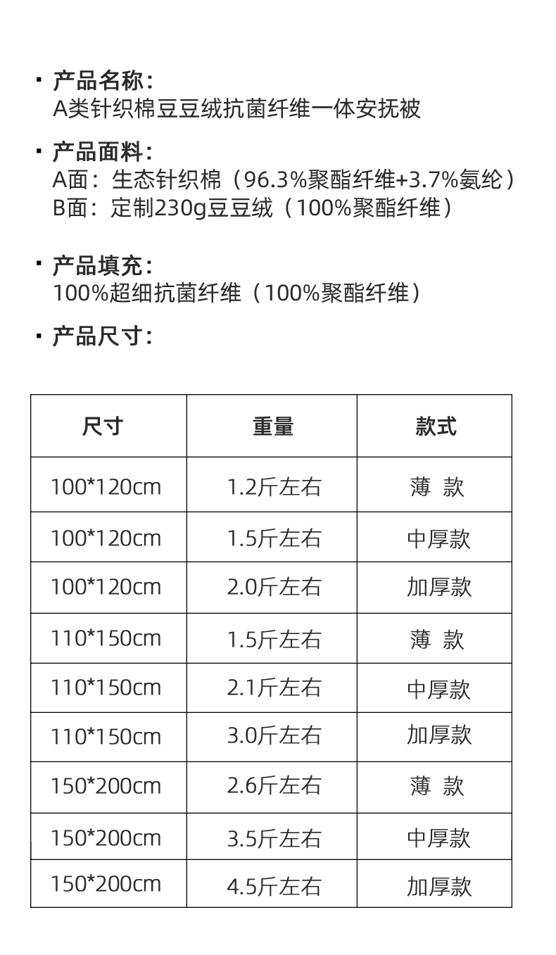 150*200 (4.5斤左右)加厚款 | ¥85.00 |