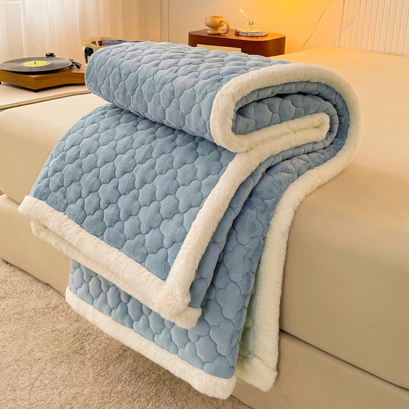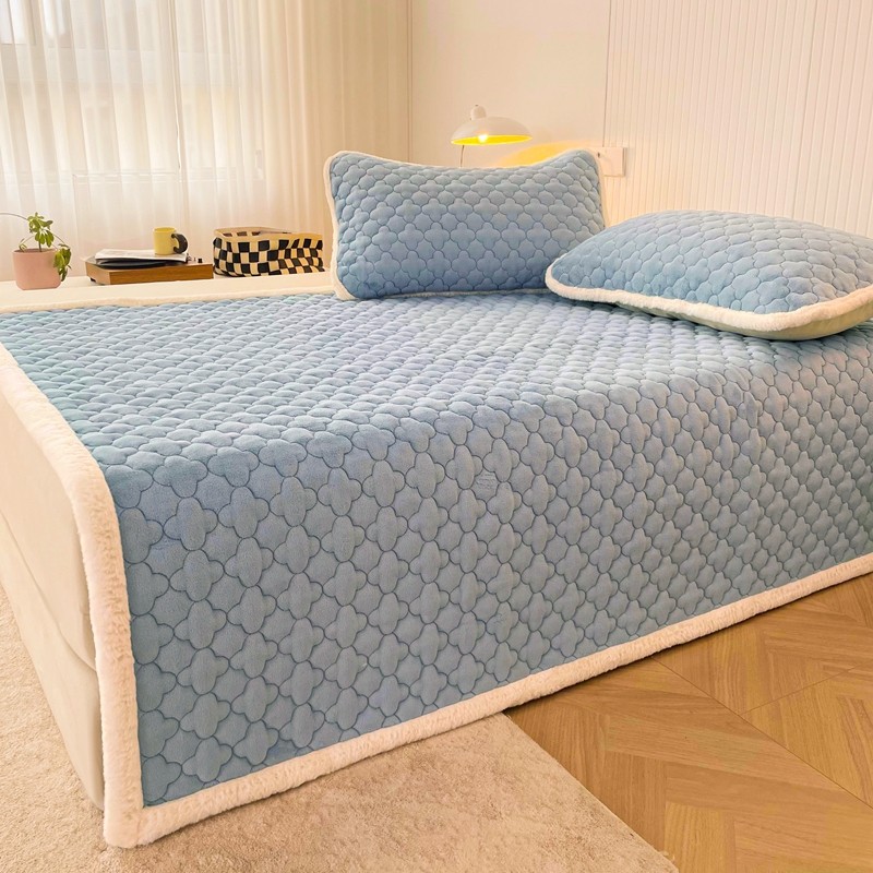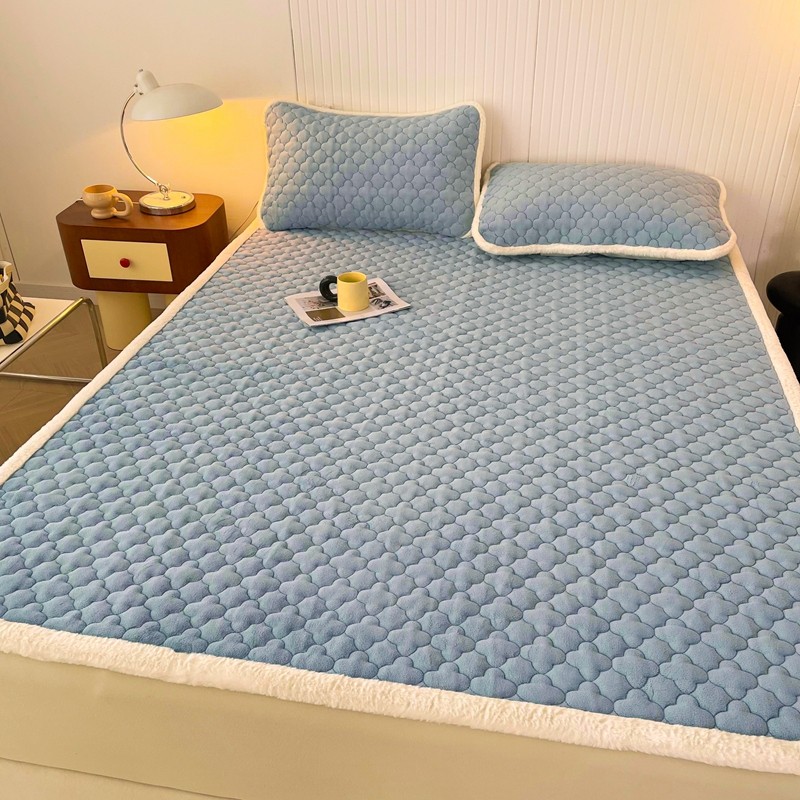 商品名称:初心 2023新款A类素色牛奶绒加厚夹棉床垫床褥子 海盐蓝