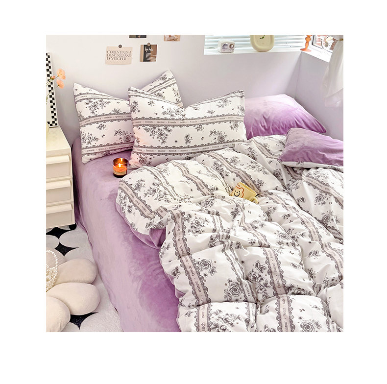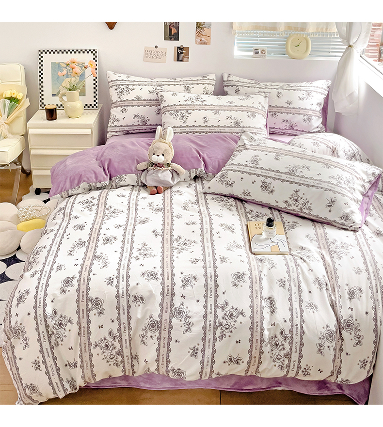 盛馨家纺 2023新款棉加绒A版高支高密13372全棉加B版加厚宝宝绒牛奶绒床单床笠四件套 罗马假日