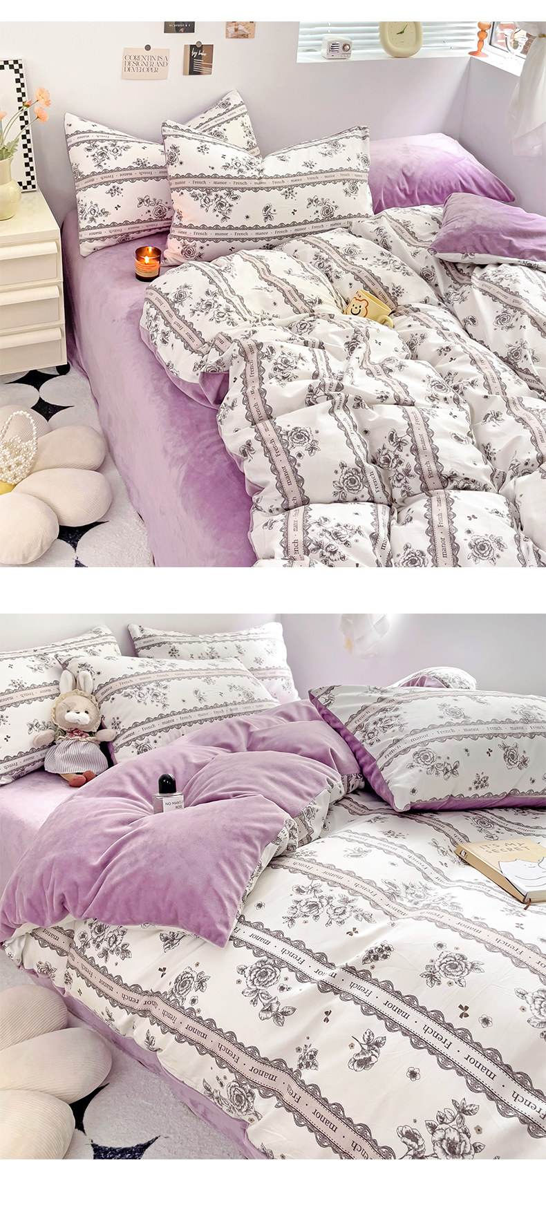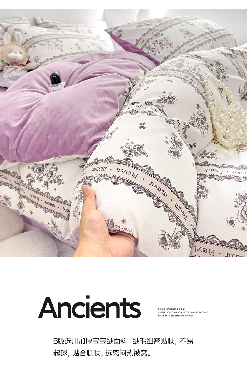 商品名称:盛馨家纺 2023新款棉加绒A版高支高密13372全棉加B版加厚宝宝绒牛奶绒床单床笠四件套 罗马假日