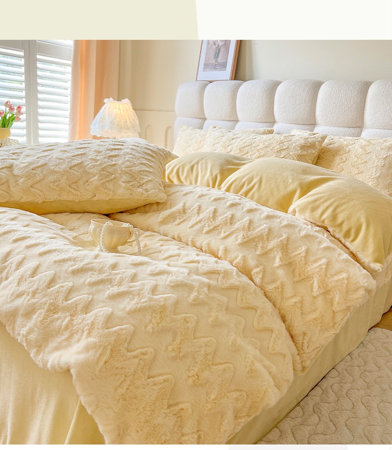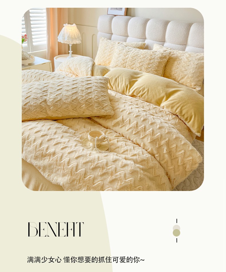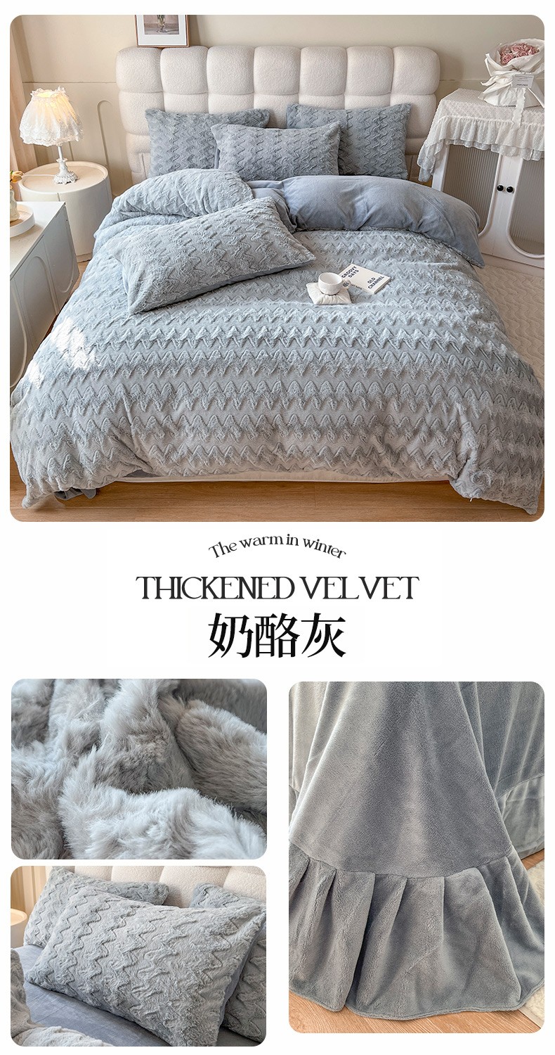 (总)网红馆 2025新款A版兔毛绒B版素色牛奶绒四件套-归简