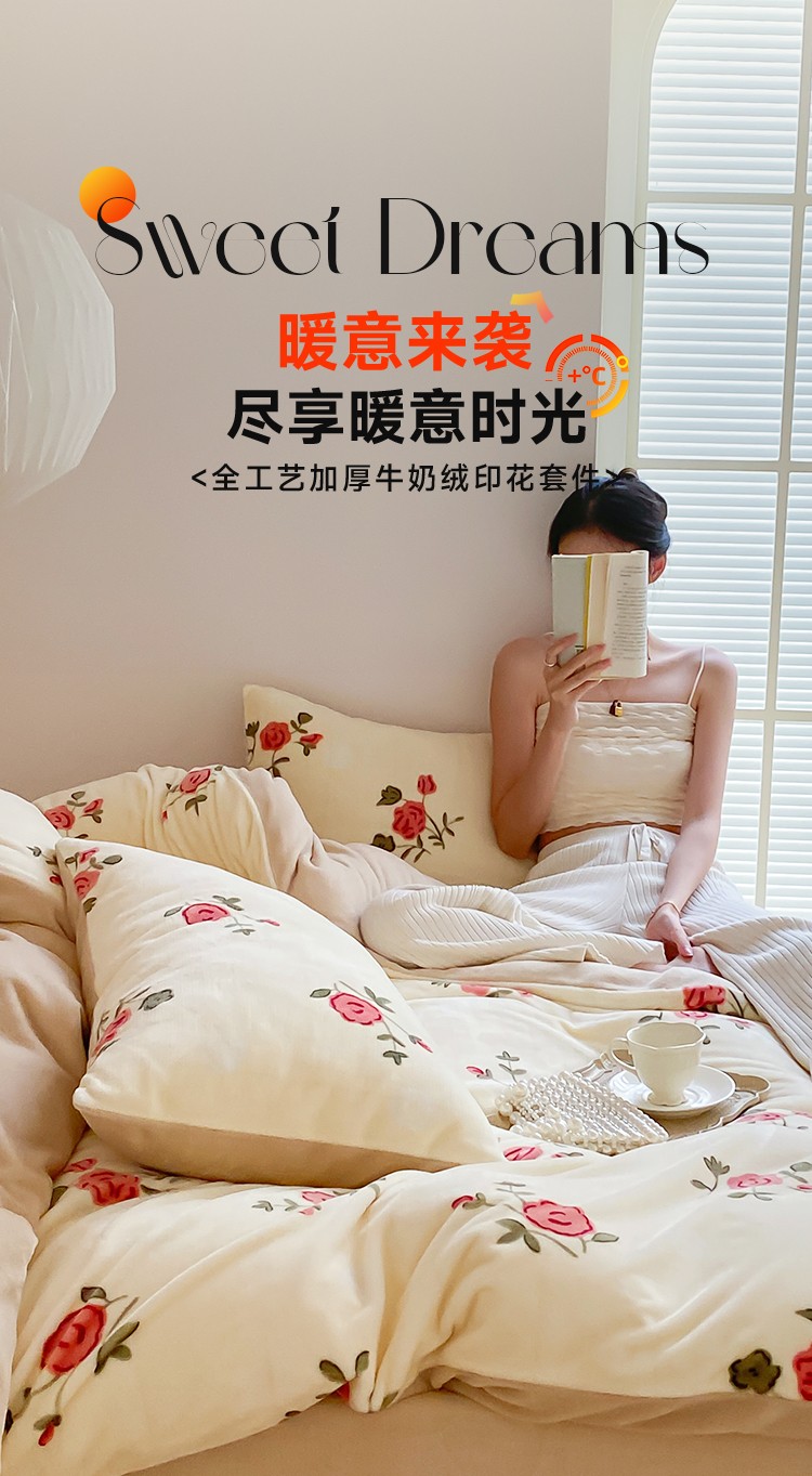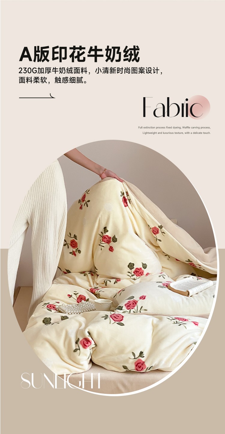 当前位置: 91家纺网 > 商品网购 > 床品套件 > 四件套 > 牛奶绒四件套 > 时光里 2023新款230g半消光印花牛奶绒四件套 花卉款-觅棠