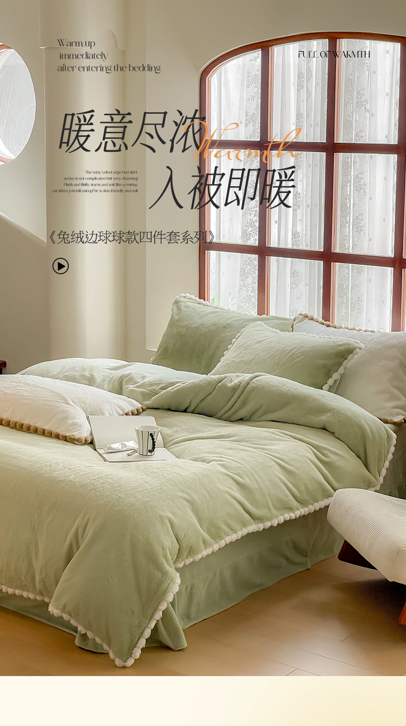 商品名称:名品优仓 2023新款高克重兔绒边带球球款四件套 青稞绿