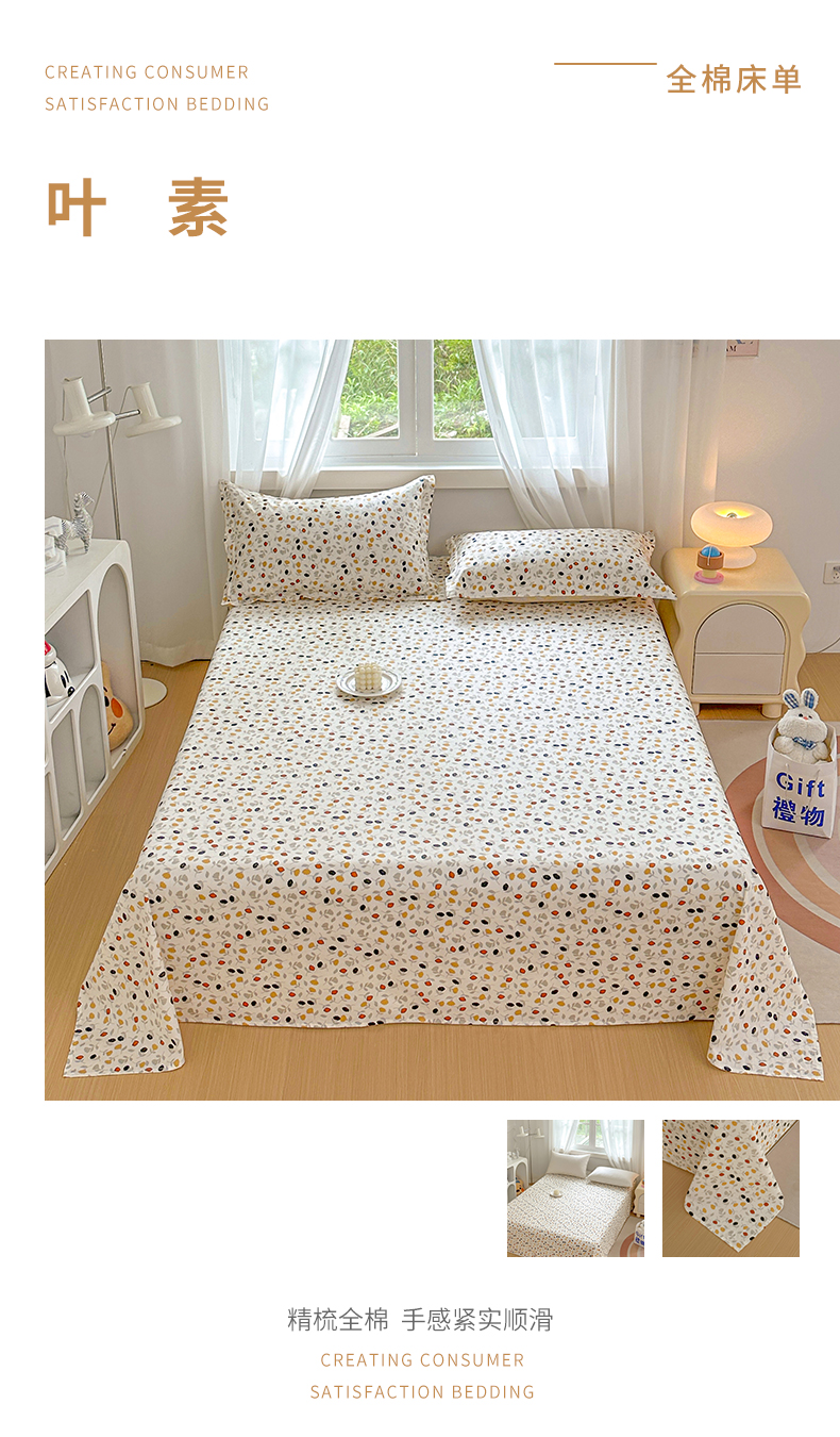 商品名称:元元被芯 2023新款全棉直角印花床单 叶素