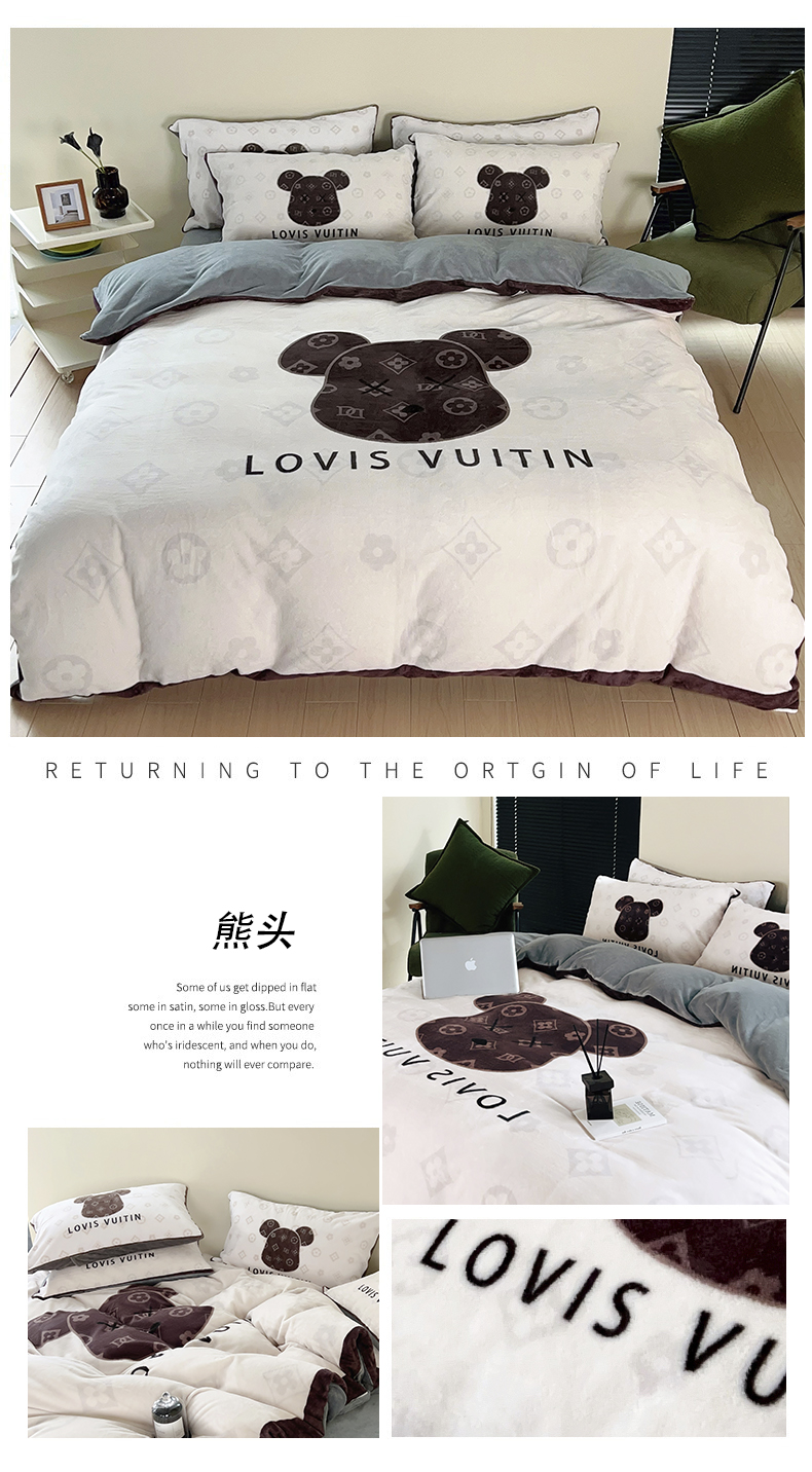 商品名称:色鬼 2023新款轻奢大牌风印花牛奶绒四件套婴儿绒四件套 熊头