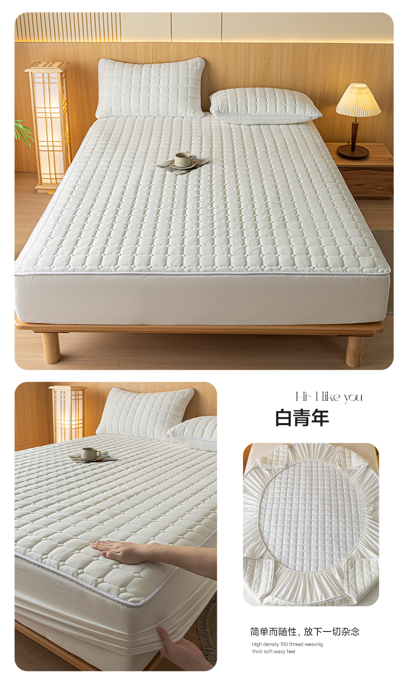 • 91家纺网 家纺一手货源 找家纺 卡伦 2025新款A类纯棉水洗棉夹棉床笠 白青年