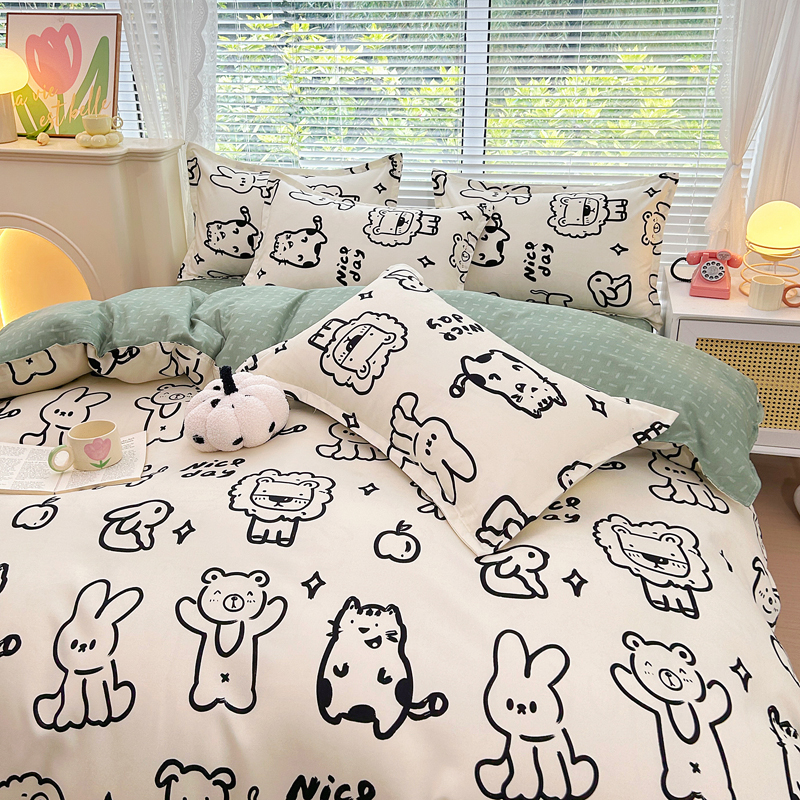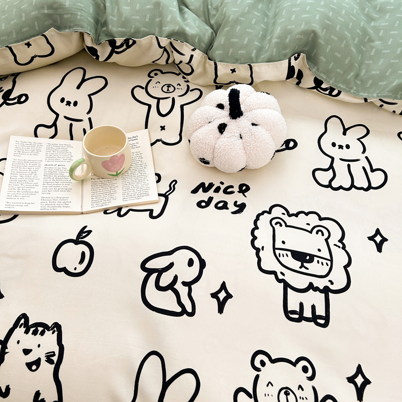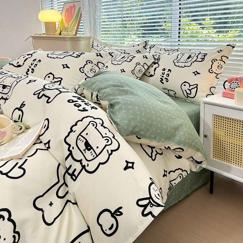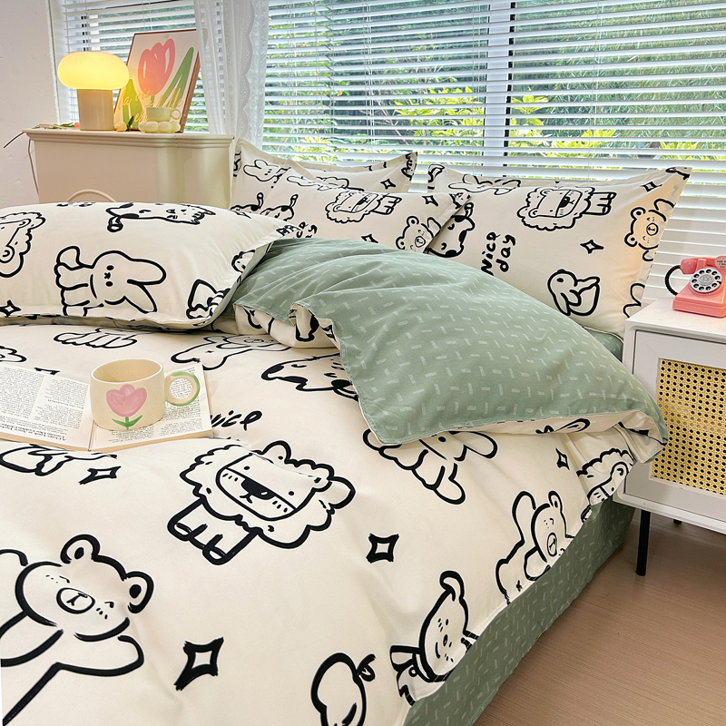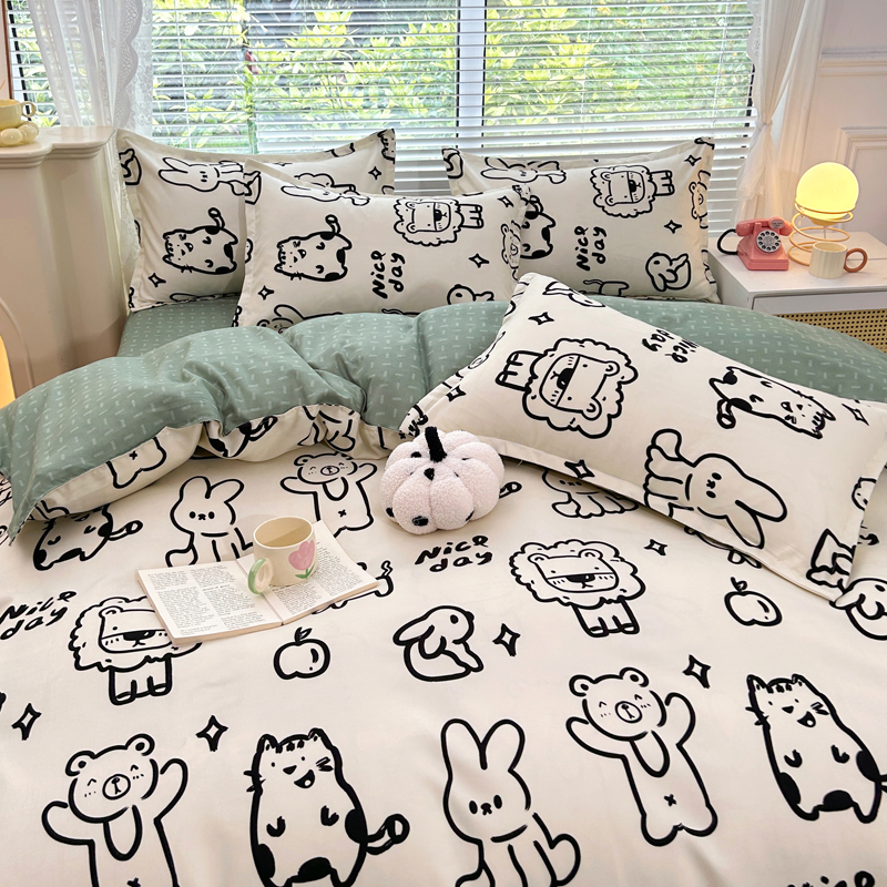 (总)曼璐家纺 2025新款小清新芦荟棉印花四件套,朝花夕拾,初夏,可可西里,喵星人,叶雨,初夏