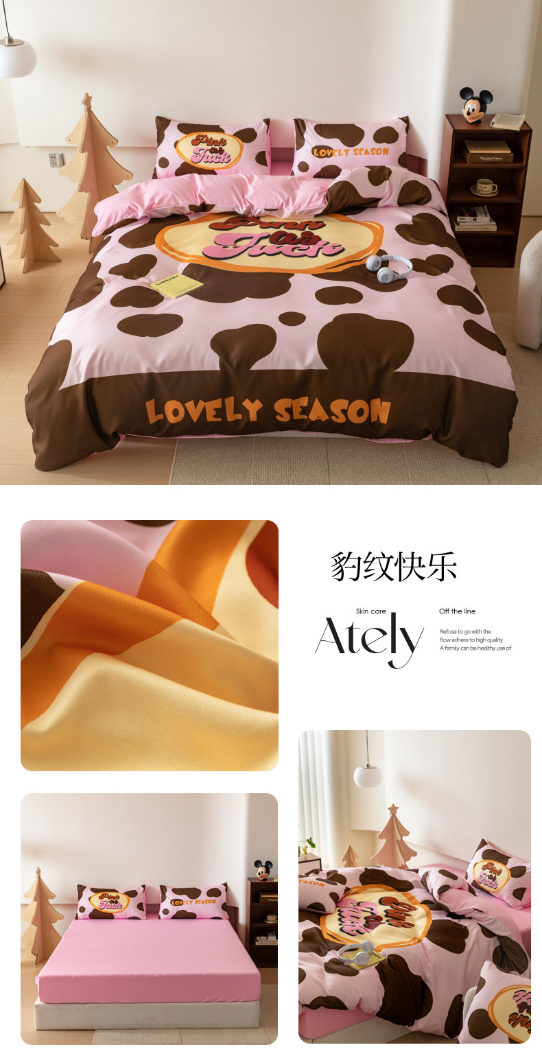 花伞家居 2023新款美拉德风秋冬系大阪云层棉加厚四件套 豹纹快乐