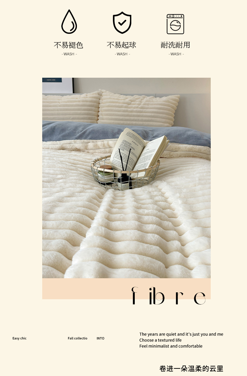 商品名称:三朵家纺 2023新款加厚保暖雕花兔毛绒四件套 艾拉-米月白灰