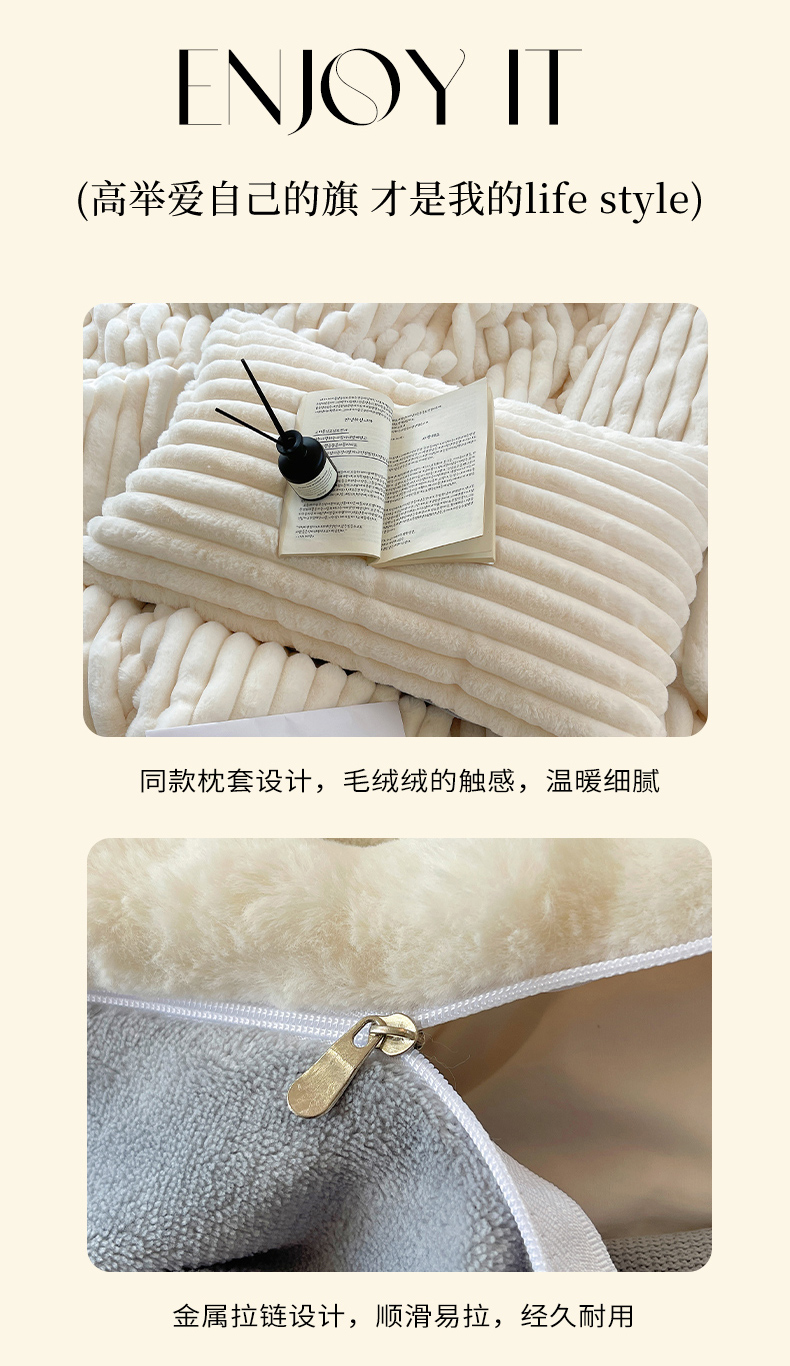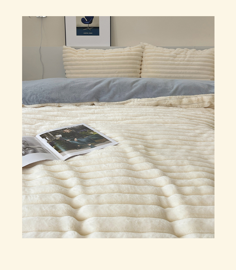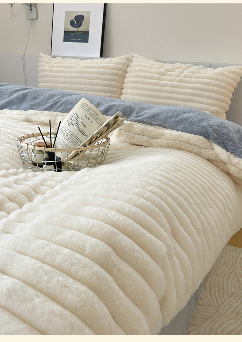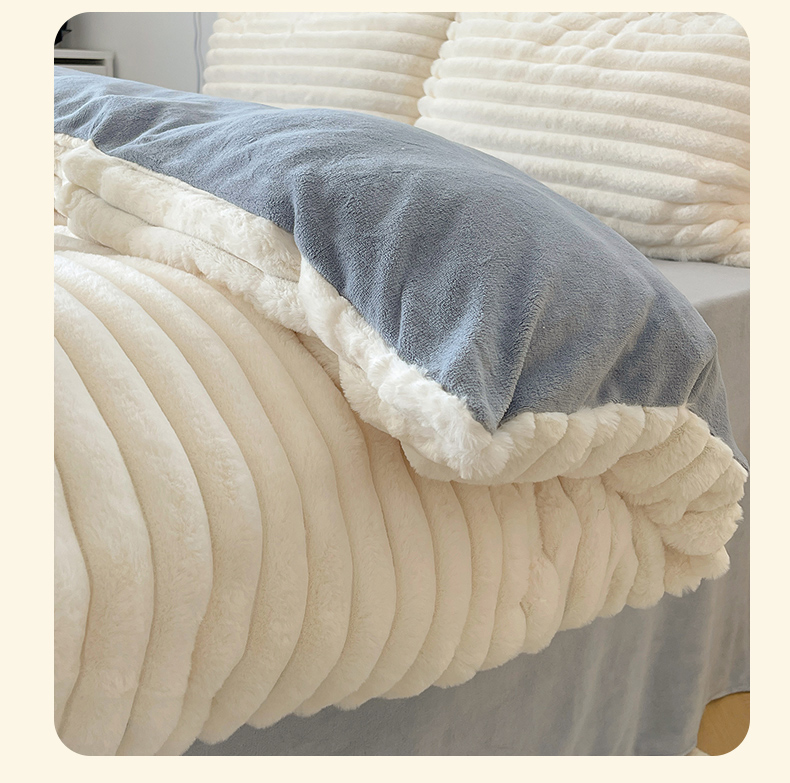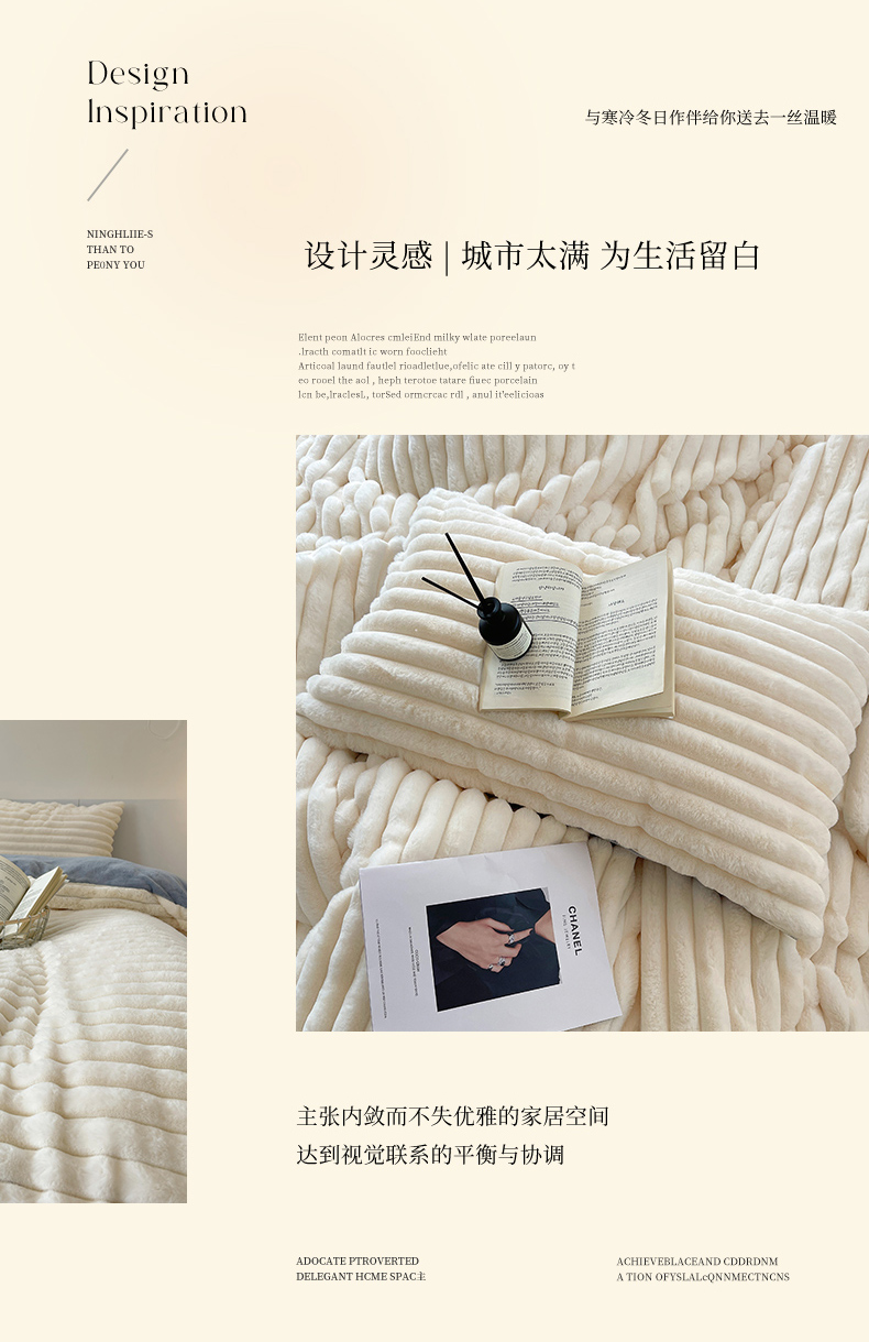 三朵家纺 2023新款加厚保暖雕花兔毛绒四件套 艾拉-米月白灰